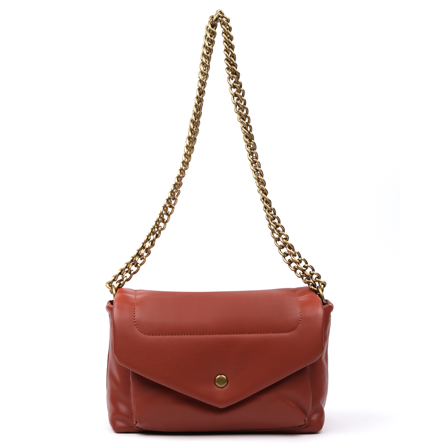 Стильная объемная сумка FABRETTI в коричневом цвете выполнена из экокожи нежной текстуры и отличается лаконичным дизайном. Аксессуар закрывается клапаном с магнитной кнопкой, под которым располагается карман на магнитной кнопке. Основное отделение закрывается на молнию с удобным поводком. Внутри есть 2 боковых кармана для мелочей: открытый и на молнии. Функцию плечевого ремня выполняет цепочка, которую можно носить двумя способами: через плечо или на плече, трансформировав в 2 ручки.