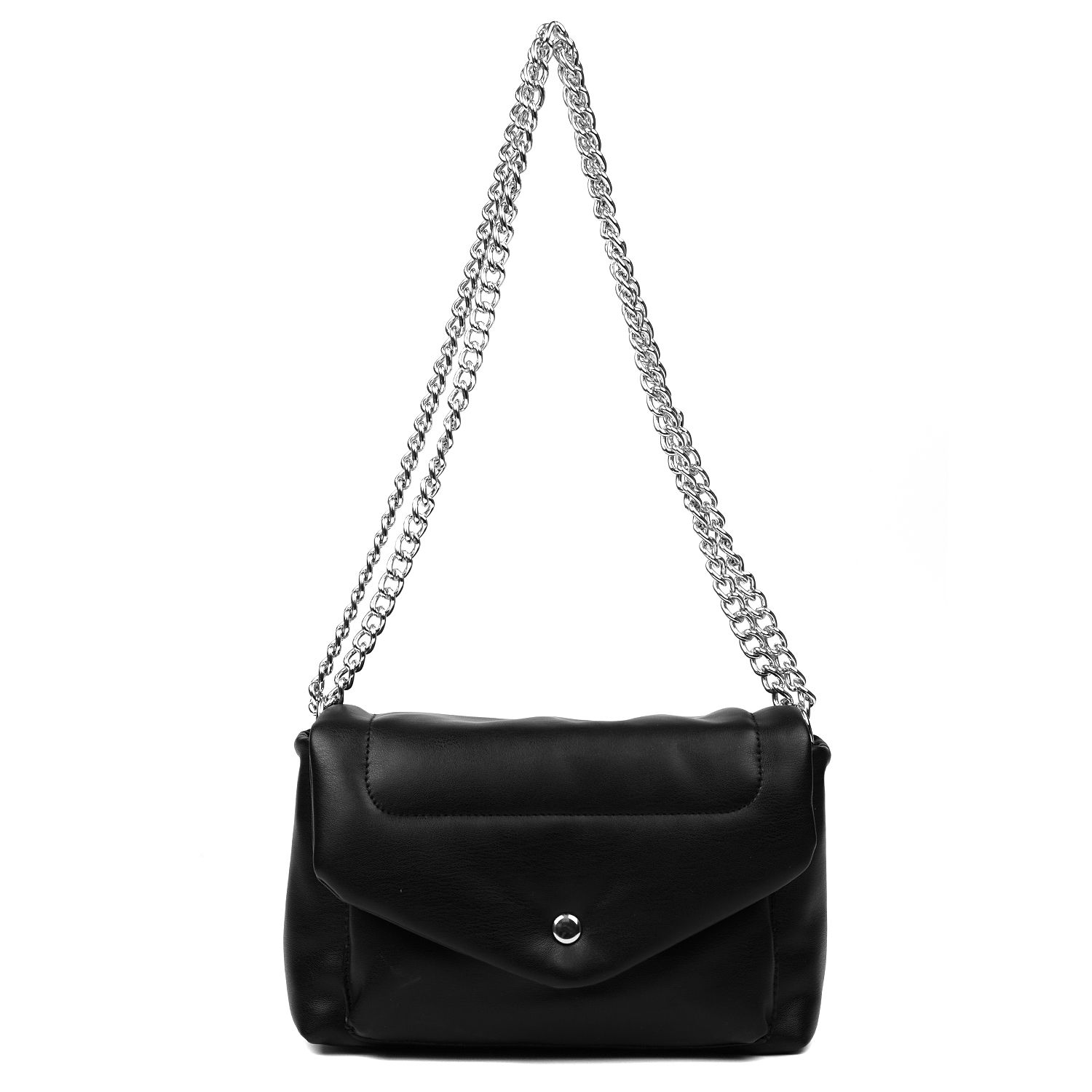 Стильная объемная сумка FABRETTI в черном цвете выполнена из экокожи нежной текстуры и отличается лаконичным дизайном. Аксессуар закрывается клапаном с магнитной кнопкой, под которым располагается карман на магнитной кнопке. Основное отделение закрывается на молнию с удобным поводком. Внутри есть 2 боковых кармана для мелочей: открытый и на молнии. Функцию плечевого ремня выполняет цепочка, которую можно носить двумя способами: через плечо или на плече, трансформировав в 2 ручки.