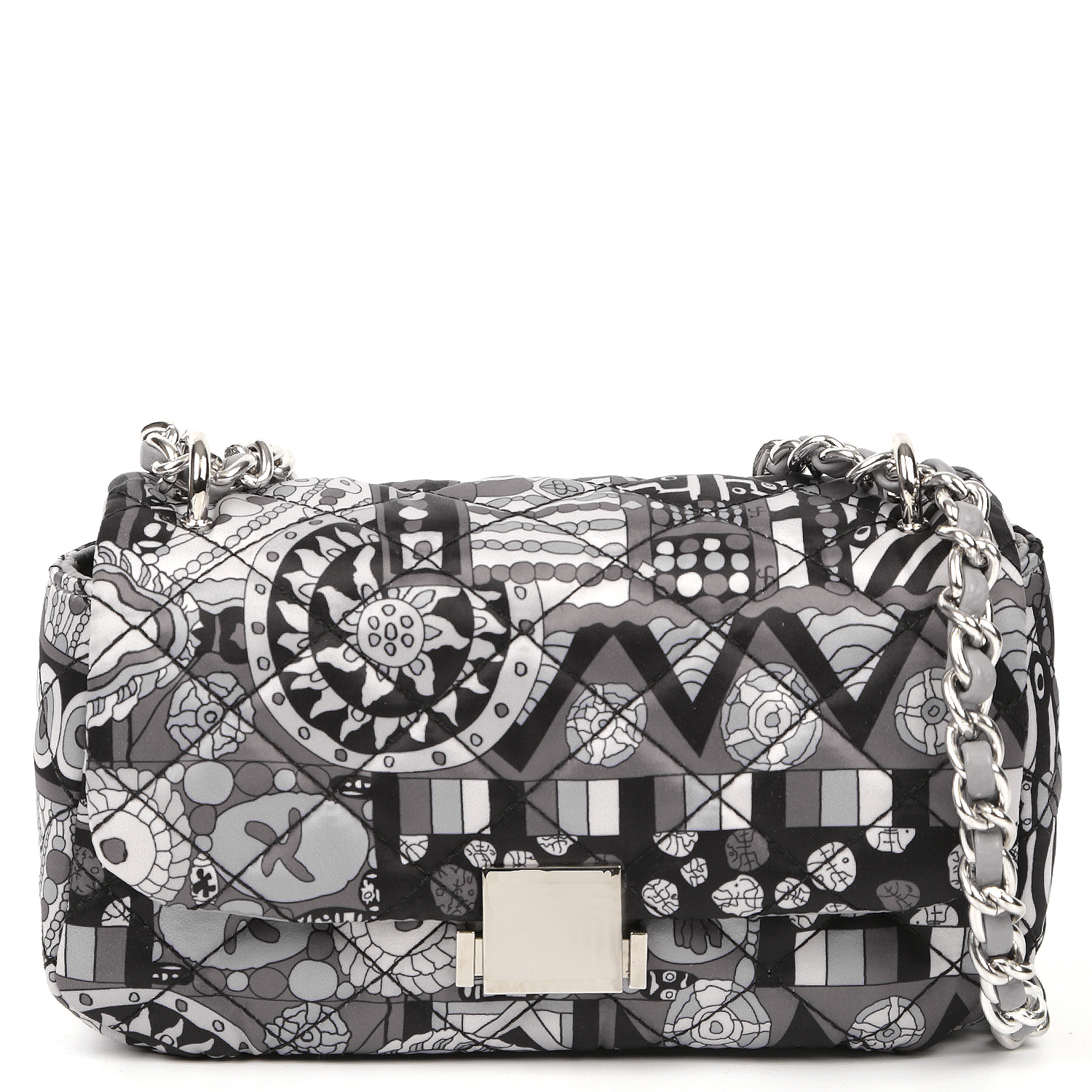 Оригинальная кросс-боди FABRETTI станет заметной деталью в образе. Модель выполнена из экокожи в сером оттенке и декорирована стегаными текстильными вставками с абстрактным узором в этностиле. Сумка закрывается клапаном с механическим замком. Внутри есть боковой карман на молнии. Функцию плечевого ремня выполняет цепочка, которую можно носить двумя способами: через плечо или на плече, трансформировав в 2 ручки. Цвет фурнитуры - серебро.
