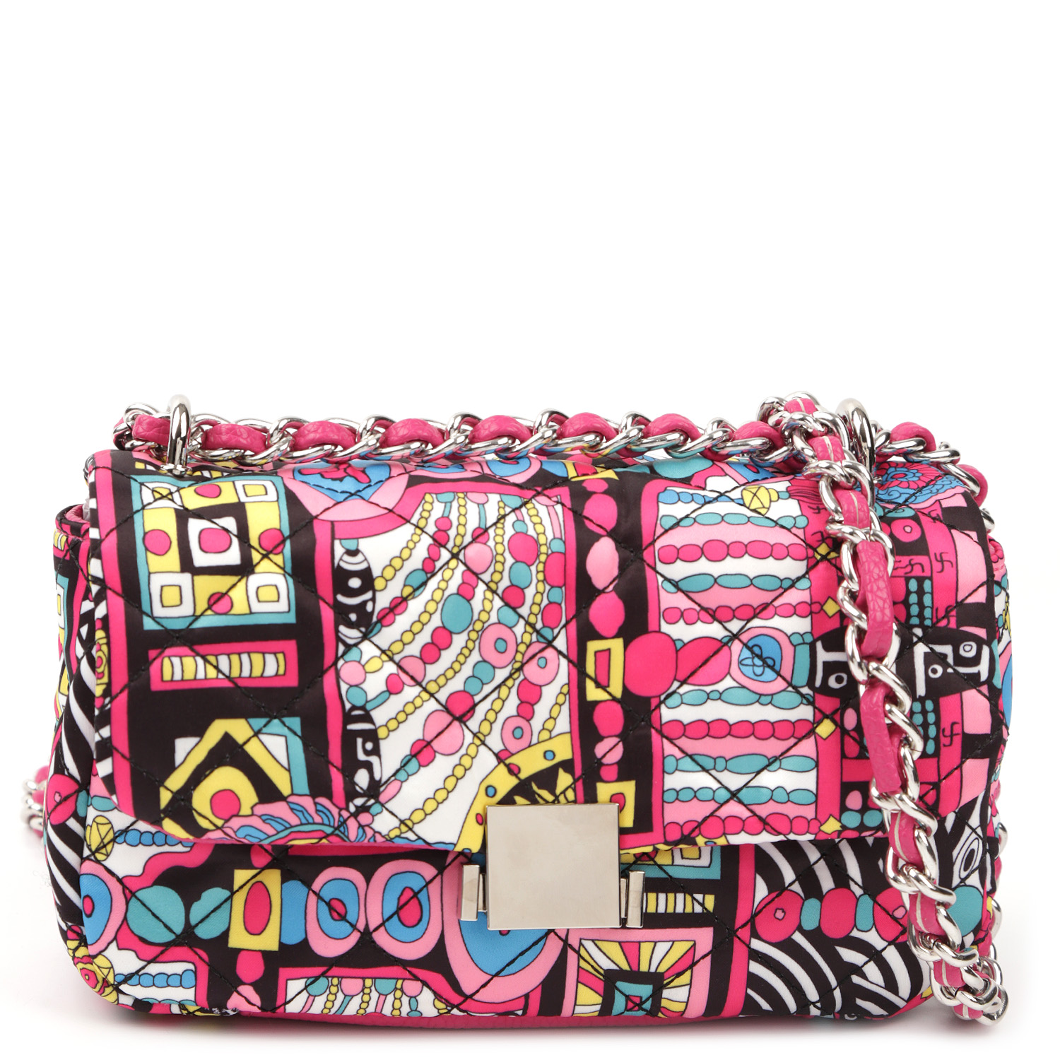 Оригинальная кросс-боди FABRETTI станет заметной деталью в образе. Модель выполнена из экокожи в оттенке фуксии и декорирована стегаными текстильными вставками с абстрактным узором в этностиле. Сумка закрывается клапаном с механическим замком. Внутри есть боковой карман на молнии. Функцию плечевого ремня выполняет цепочка, которую можно носить двумя способами: через плечо или на плече, трансформировав в 2 ручки. Цвет фурнитуры - серебро.