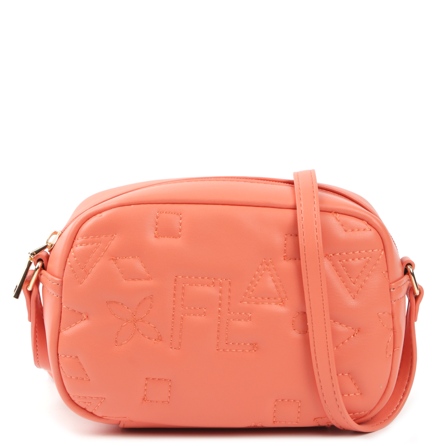 Компактная кросс-боди FABRETTI в коралловом оттенке выполнена из гладкой экокожи и декорирована фигурной стёжкой. Сумка закрывается на полукруглую молнию. Внутри боковой карман на молнии. Плечевой ремень регулируется по длине, ширина – 1,5 см. Цвет фурнитуры - золото.
