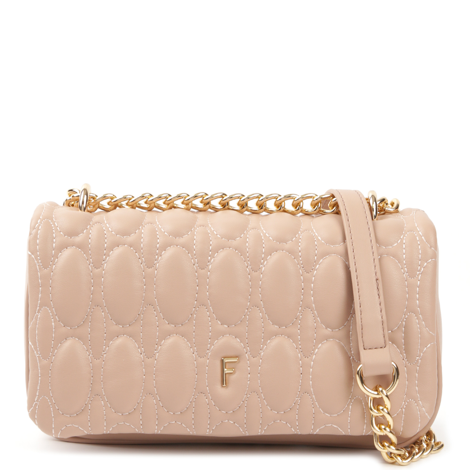 Эффектная кросс-боди FABRETTI в бежевом оттенке выполнена из экокожи и декорирована оригинальной стежкой. Сумка закрывается клапаном с магнитной кнопкой. Внутри 2 боковых кармана для мелочей: открытый и на молнии. Функцию плечевого ремня выполняет цепочка, которую можно носить двумя способами: через плечо или на плече, трансформировав в 2 ручки. Цвет фурнитуры - золото.