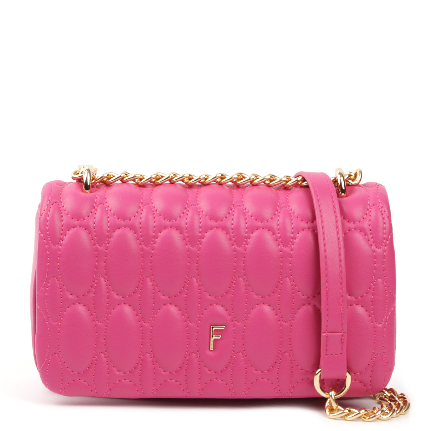 Эффектная кросс-боди FABRETTI в оттенке фуксии выполнена из экокожи и декорирована оригинальной стежкой. Сумка закрывается клапаном с магнитной кнопкой. Внутри 2 боковых кармана для мелочей: открытый и на молнии. Функцию плечевого ремня выполняет цепочка, которую можно носить двумя способами: через плечо или на плече, трансформировав в 2 ручки. Цвет фурнитуры - золото.