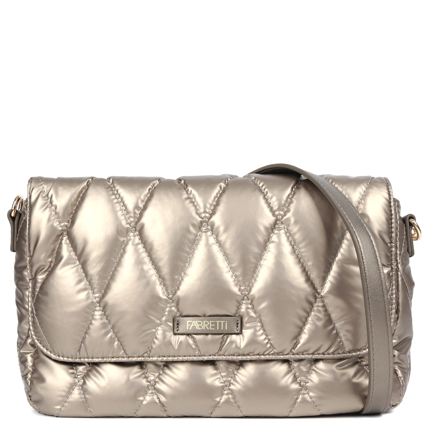 Стеганая кросс-боди FABRETTI в золотисто-бежевом оттенке станет оригинальной деталью в образе. Модель выполнена из высокотехнологичного материала "таффета", который устойчив к воздействию влаги и перепаду температур. В качестве декора выступает вертикальная стёжка. Сумка закрывается клапаном на магнитных кнопках. Основное отделение - на молнии. Внутри 2 боковых кармана для мелочей: открытый и на молнии. Плечевой ремень регулируется по длине, ширина - 2 см. Цвет фурнитуры - золото.