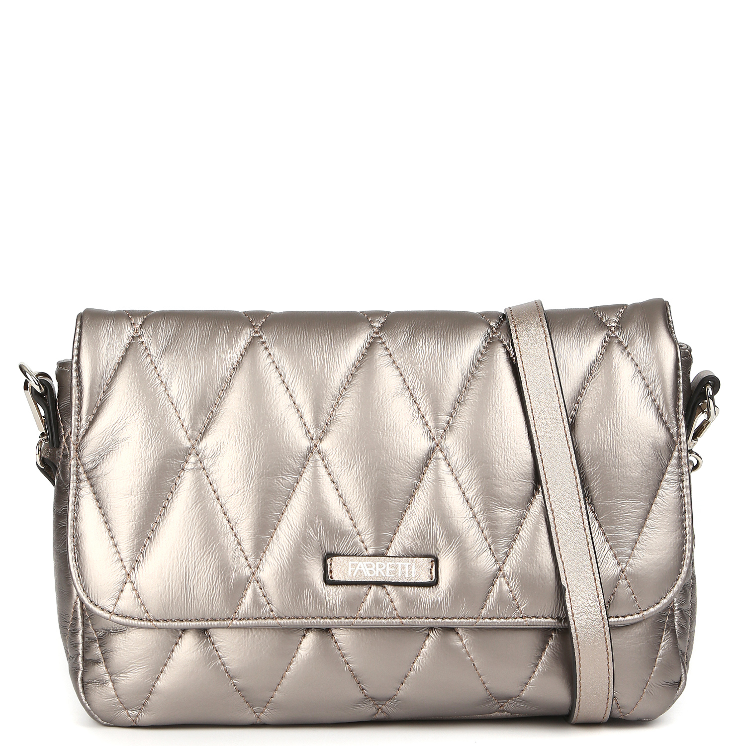 Стеганая кросс-боди FABRETTI в серебристо-сером оттенке станет оригинальной деталью в образе. Модель выполнена из высокотехнологичного полиэстера, который устойчив к воздействию влаги и перепаду температур. В качестве декора выступает ромбовидная стёжка. Сумка закрывается клапаном на магнитных кнопках. Основное отделение - на молнии. Внутри 2 боковых кармана для мелочей: открытый и на молнии. Плечевой ремень регулируется по длине, ширина - 2 см. Цвет фурнитуры - серебро.