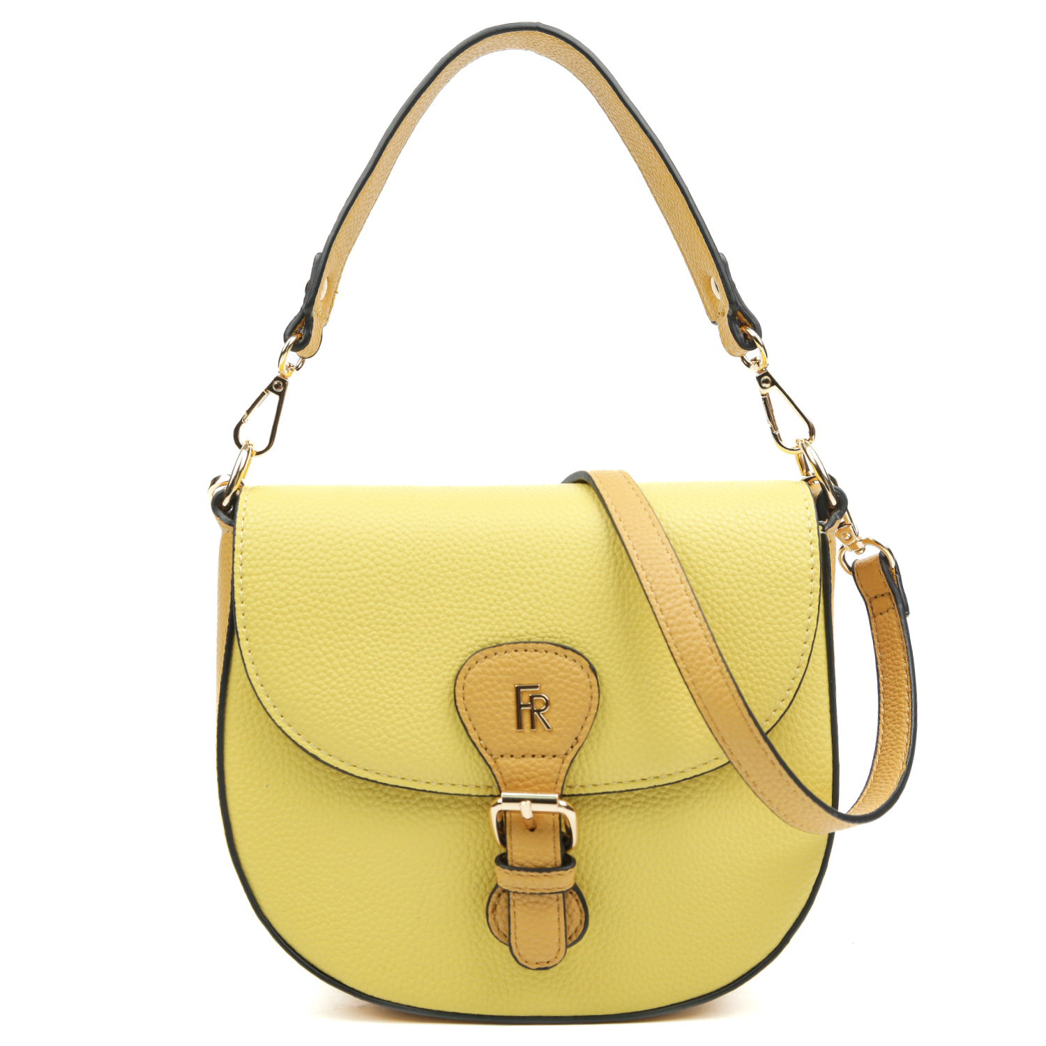 Компактная кросс-боди FABRETTI в желтом оттенке выполнена из экокожи зернистой текстуры. Сумка хорошо держит форму и закрывается клапаном на магнитной кнопке. Внутри есть карман для мелочей на молнии. В комплекте 3 съемных плечевых ремня: первый - длина 38 см, ширина 3 см; второй регулируется по длине, ширина 1,5 см; текстильный регулируется по длине, ширина 5 см. Цвет фурнитуры - золото.