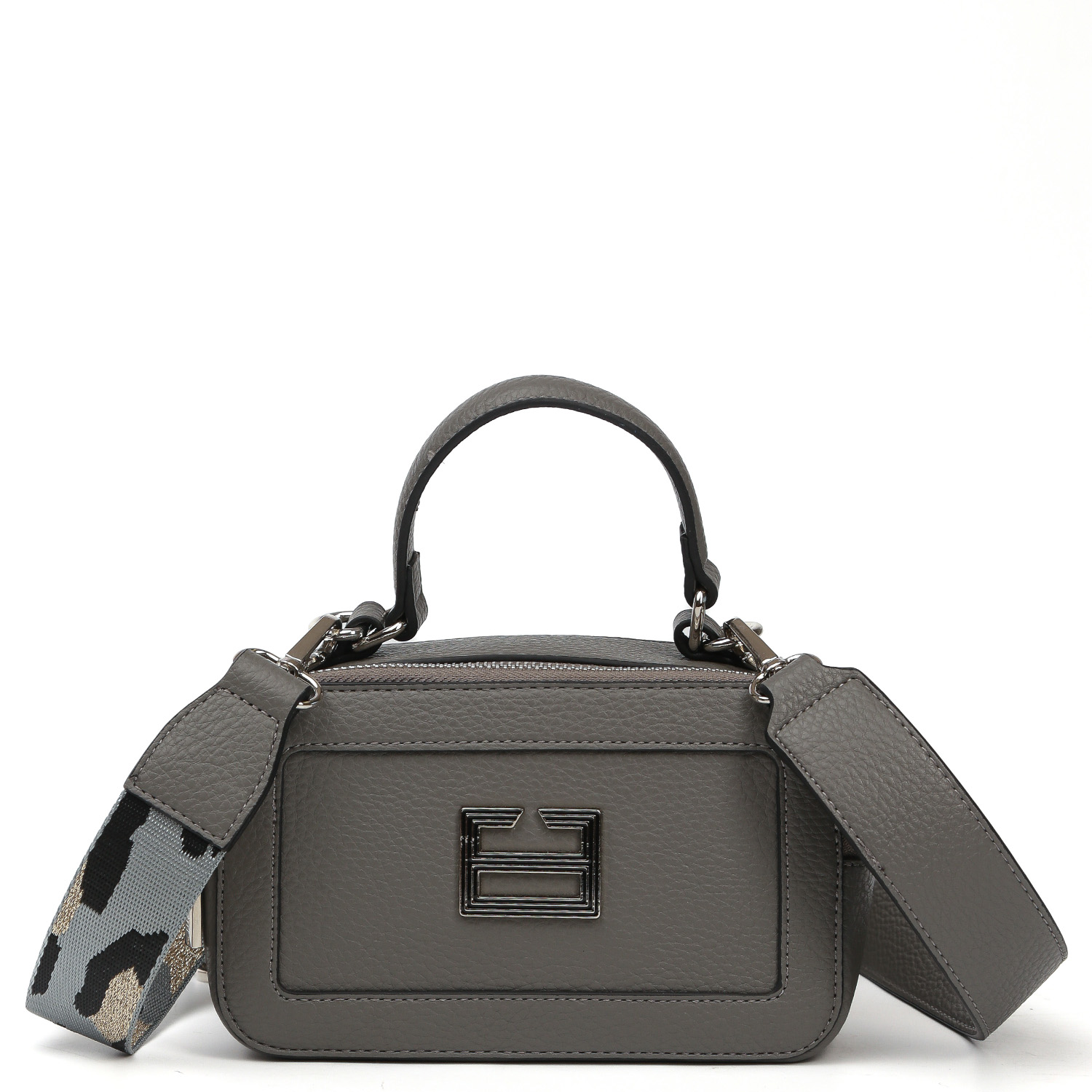 Компактная кросс-боди FABRETTI в сером оттенке выполнена из экокожи зернистой текстуры. Сумка хорошо держит форму и закрывается на 2 полукруглые молнии. Внутри есть боковой карман на молнии. На тыльной стороне расположен карман быстрого доступа на магнитной кнопке. Сверху предусмотрена ручка. Текстильный плечевой ремень съемный, регулируется по длине, ширина - 5 см. Цвет фурнитуры - серебро.