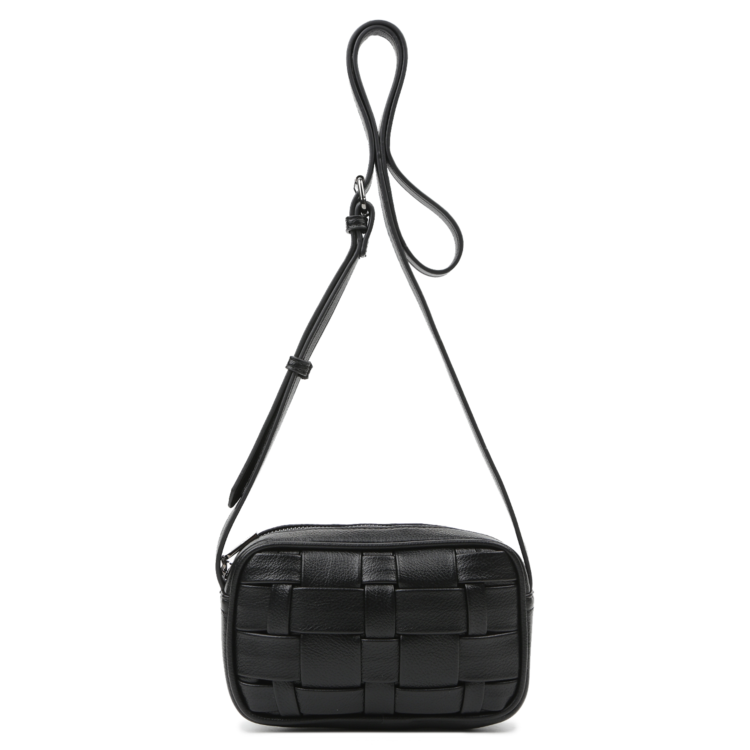 Плетеная сумка кросс-боди итальянского бренда FABRETTI выполнена из экокожи мелкозернистой фактуры в чёрном оттенке. Основное отделение закрывается на молнию. Внутри предусмотрены открытый карман и карман на молнии. Модель оснащена длинным несъёмным регулируемым ремешком длиной 123–136 см и шириной 1,5 см. Цвет фурнитуры — чёрный никель.
