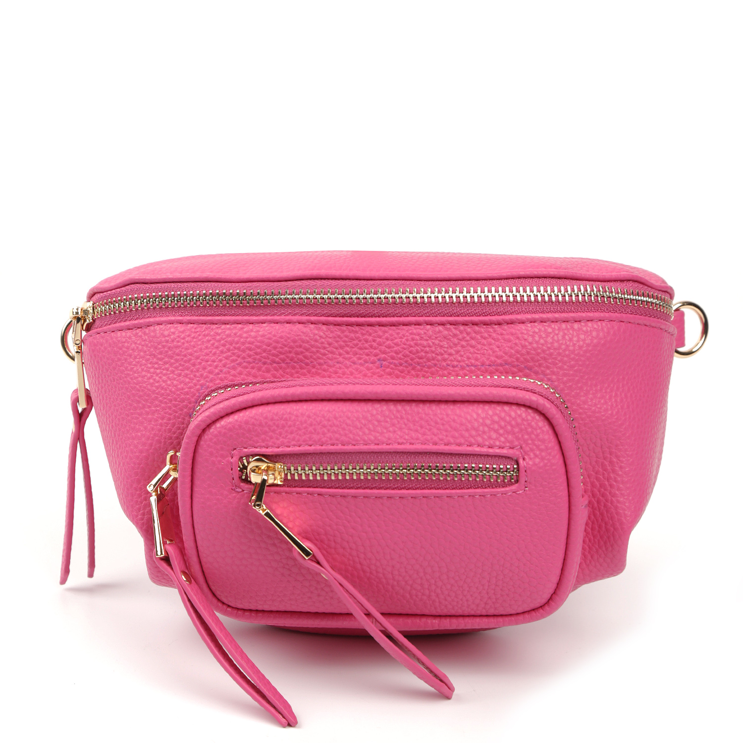 Компактная кросс-боди FABRETTI, объединяющая в себе сумку и монетницу, выручит, когда нужно взять самое необходимое. Модель выполнена из экокожи в насыщенном оттенке фуксии. Основное отделение закрывается на полукруглую молнию с удобным поводком. Внутри 2 боковых кармана для мелочей: открытый и на молнии. На лицевой стороне предусмотрены 2 кармана для мелочей. Съемный широкий ремень из текстиля (ширина - 4 см) гармонично дополняет дизайн изделия. К нему на карабине пристегивается монетница на молнии размером: 8 х 6 х 2 см. Цвет фурнитуры - золото.