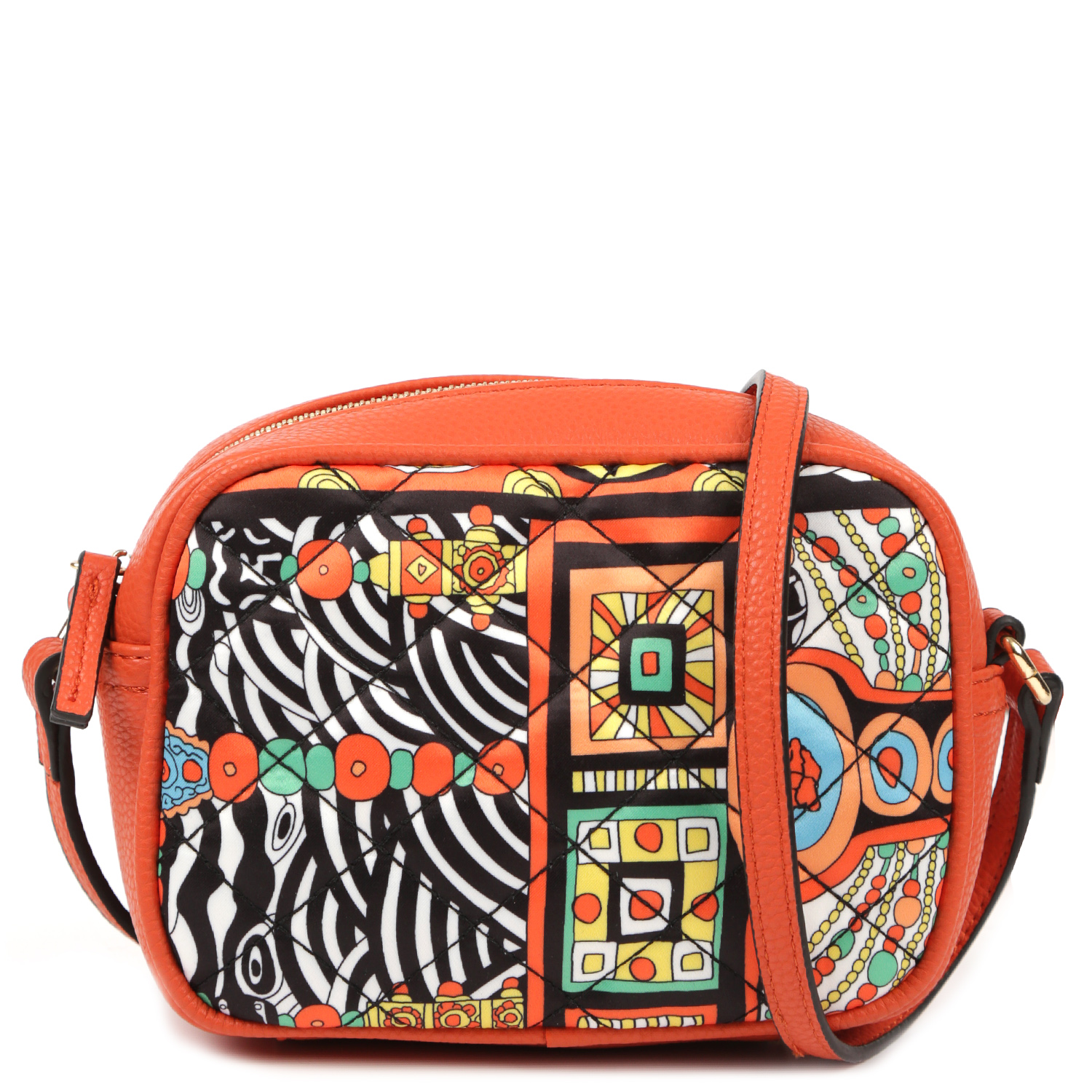 Оригинальная кросс-боди FABRETTI станет заметной деталью в образе. Модель выполнена из экокожи в оранжевом оттенке и декорирована стеганой текстильной вставкой с абстрактным узором в этностиле. Сумка закрывается на полукруглую молнию с удобным поводком. Внутри 2 боковых кармана для мелочей: открытый и на молнии. На тыльной стороне предусмотрен карман быстрого доступа на молнии. Плечевой ремень регулируется по длине, ширина - 1 см. Цвет фурнитуры - золото.