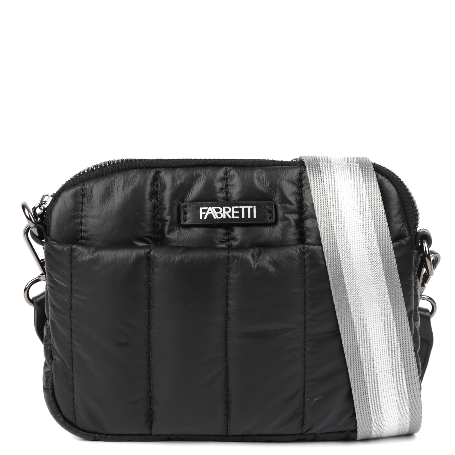 Компактная стеганая кросс-боди FABRETTI в черном цвете станет оригинальной деталью в образе. Модель выполнена из высокотехнологичного полиэстера, который устойчив к воздействию влаги и перепаду температур. В качестве декора выступает вертикальная стёжка. Сумка закрывается на полукруглую молнию с металлическим поводком. Внутри есть боковой карман на молнии. На лицевой стороне предусмотрен карман быстрого доступа на магнитной кнопке. Текстильная плечевой ремень съемный, регулируется по длине, ширина - 4 см. Цвет фурнитуры - серебро.