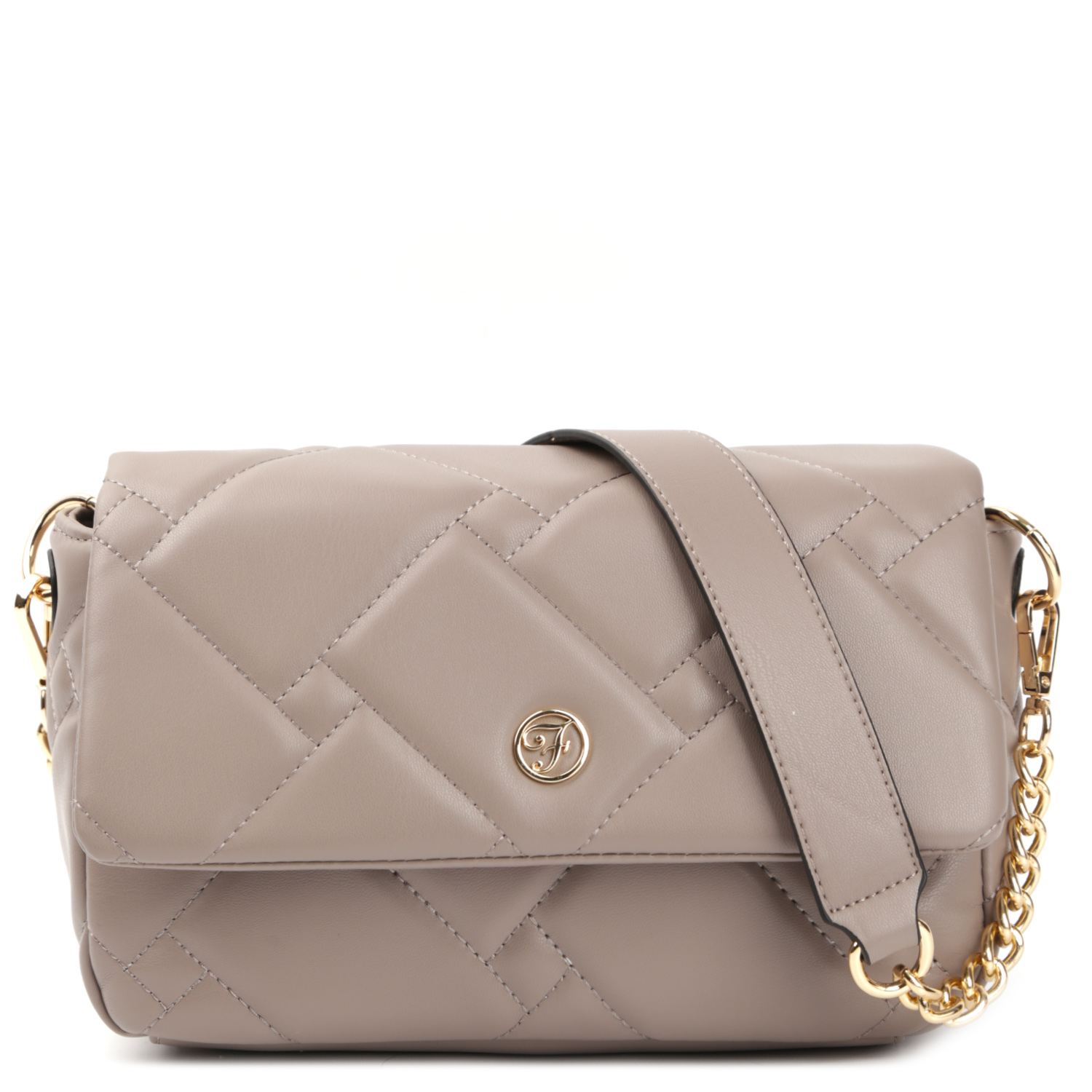 Классическая кросс-боди FABRETTI в серо-бежевом оттенке выполнена из гладкой экокожи и декорирована геометрической стёжкой. Сумка закрывается клапаном на магнитной кнопке. Внутри предусмотрен открытый боковой карман. Легкая и компактная сумка вмещает все необходимое: телефон, деньги, ключи, банковские карты. В комплекте 2 съемных плечевых ремня: ремень-цепочка (длина - 70 см, ширина - 3 см); второй ремень регулируется по длине (длина - 130 см, ширина - 2 см). Цвет фурнитуры - золото.