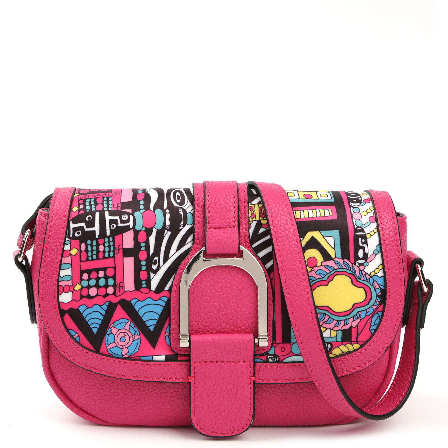 Оригинальная кросс-боди FABRETTI в оттенке фуксии станет акцентной деталью в образе. Модель выполнена из экокожи зернистой текстуры и декорирована стеганой текстильной вставкой с абстрактным узором в этностиле. Сумка закрывается клапаном с магнитной кнопкой. Внутри 2 боковых кармана для мелочей: открытый и на молнии. Плечевой ремень регулируется по длине, ширина - 2см. Цвет фурнитуры - серебро.
