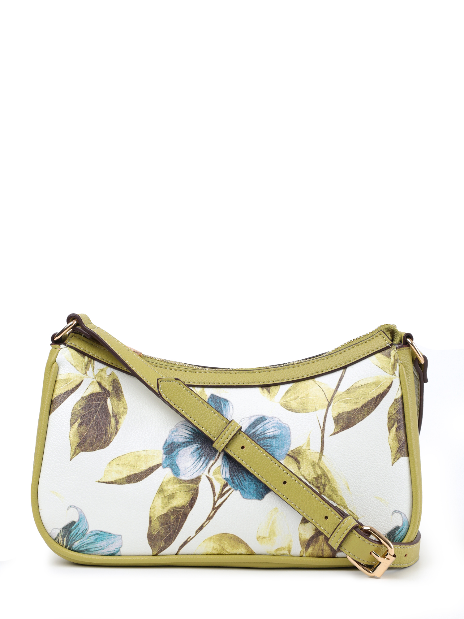 Небольшая женская сумка кросс-боди итальянского бренда FABRETTI из высококачественной экокожи белого цвета с зернистой фактурой и растительными принтами. Прекрасно подходит для летнего гардероба, одежды светлых, зеленых, природных тонов.