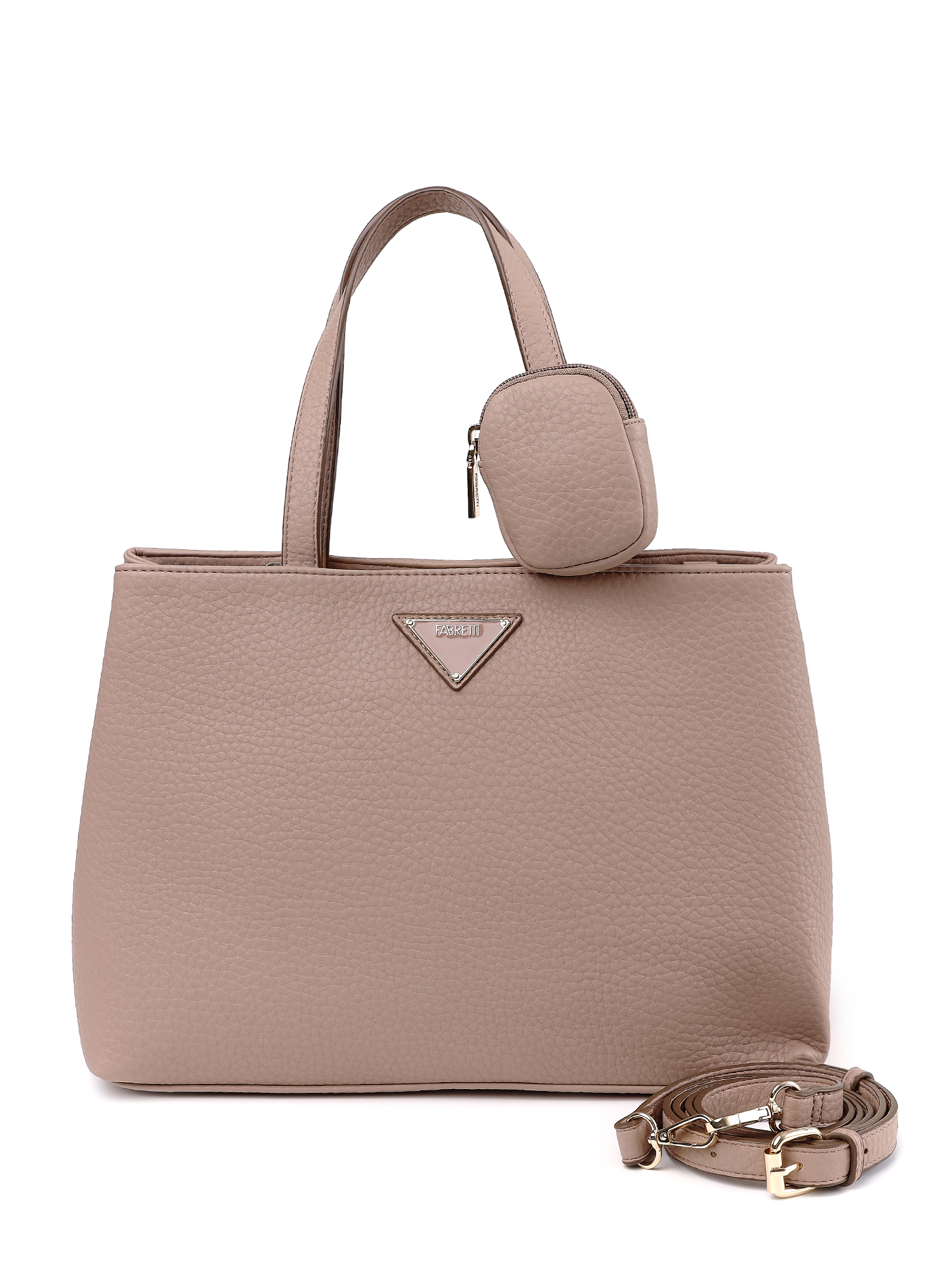 Женская сумка тоут итальянского бренда FABRETTI – классика городского стиля, выполненная из нежной крупнозернистой экокожи светло-розового оттенка.