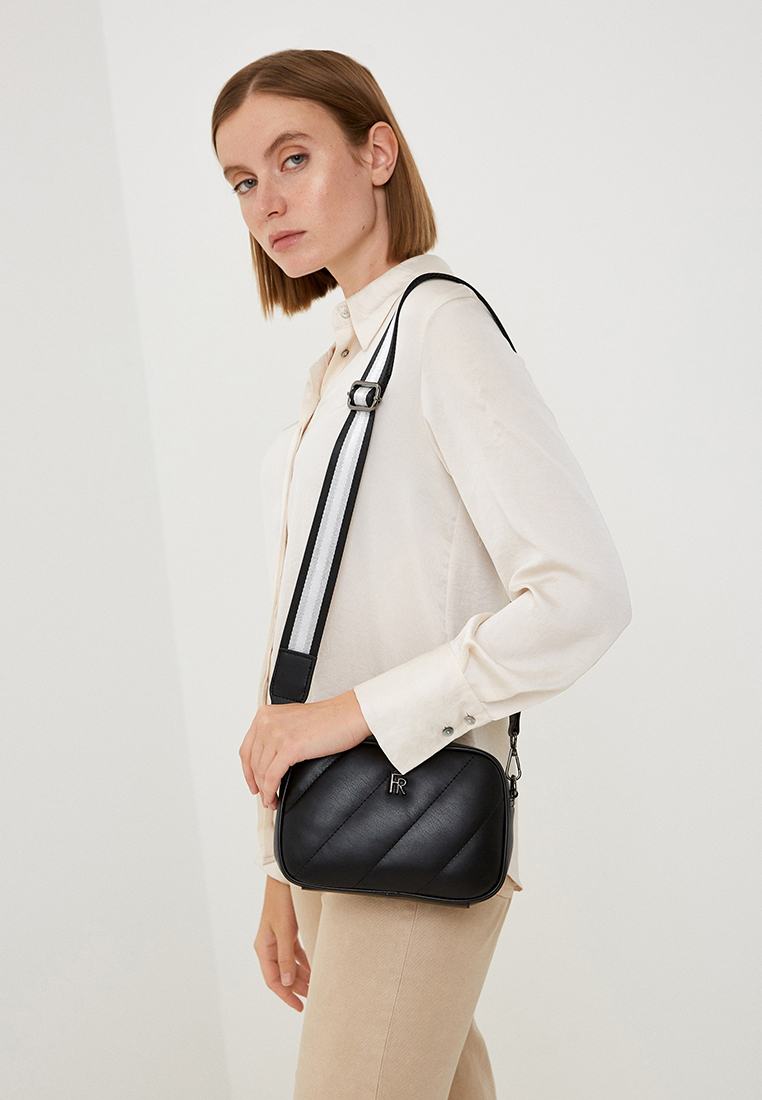 Компактная кросс-боди FABRETTI в черном цвете выполнена из экокожи гладкой текстуры и декорирована диагональной стёжкой. Сумка закрывается на полукруглую молнию. Внутри 2 боковых кармана для мелочей: открытый и на молнии. Текстильный плечевой ремень съемный, регулируется по длине, ширина - 4 см. Цвет фурнитуры - черненый никель.