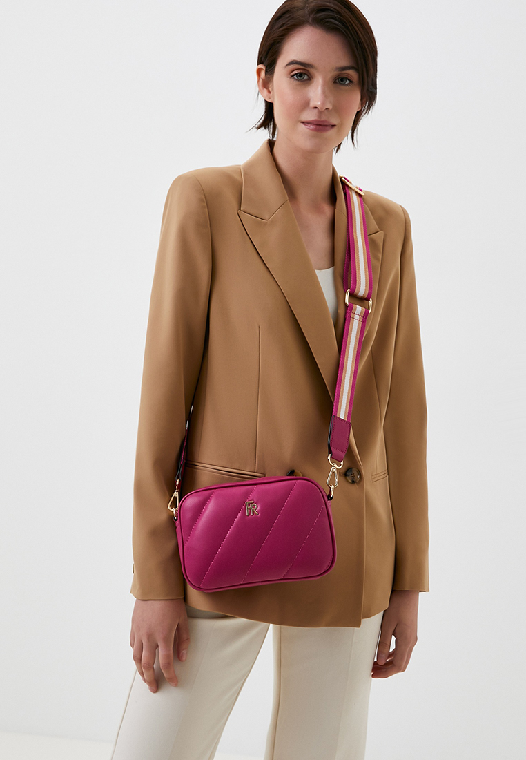 Компактная кросс-боди FABRETTI в ярком оттенке фуксии выполнена из экокожи гладкой текстуры и декорирована диагональной стёжкой. Сумка закрывается на полукруглую молнию. Внутри 2 боковых кармана для мелочей: открытый и на молнии. Текстильный плечевой ремень съемный, регулируется по длине, ширина - 4 см. Цвет фурнитуры - золото.