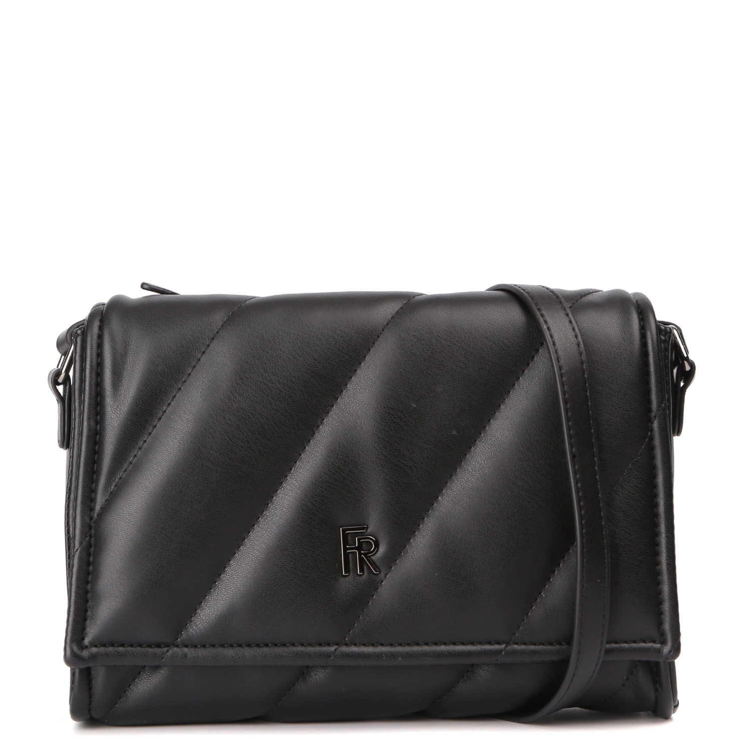 Стильная сумка на плечо FABRETTI в черном цвете выполнена из искусственной кожи гладкой фактуры и декорирована диагональной стёжкой. Сумка закрывается клапаном на двух магнитных кнопках. Основное отделение на молнии. Внутри 2 боковых кармана для мелочей: открытый и на молнии. Дополняет дизайн плечевой ремень, регулируемый по длине, ширина - 1,5 см. Цвет фурнитуры - черненый никель.