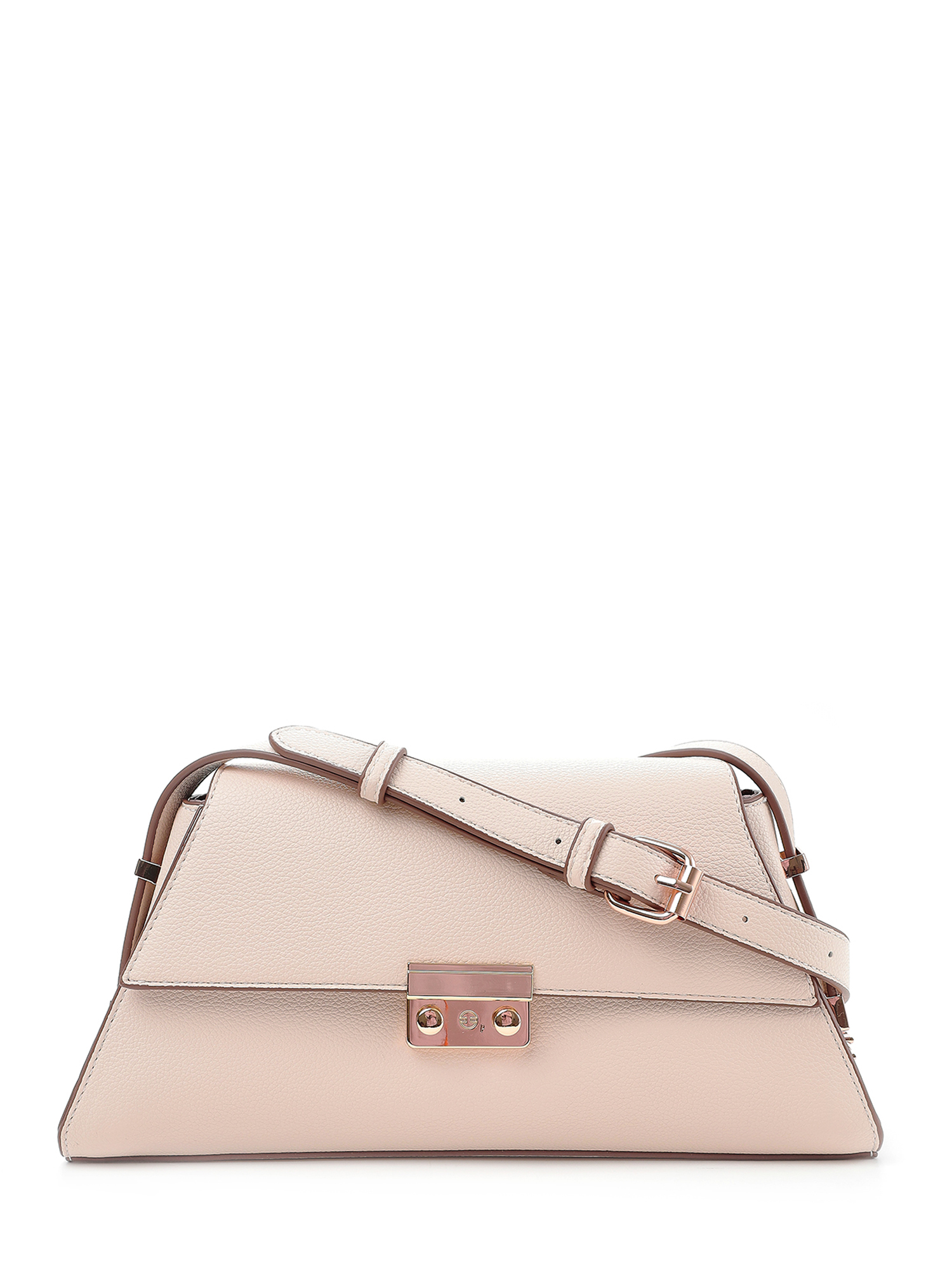 Сумка выполнена в вытянутой форме «багет» с трапециевидным силуэтом. Клапан закрывается на металлический защелкивающийся замок. Внутри основного отделения два кармана – открытый и на молнии.