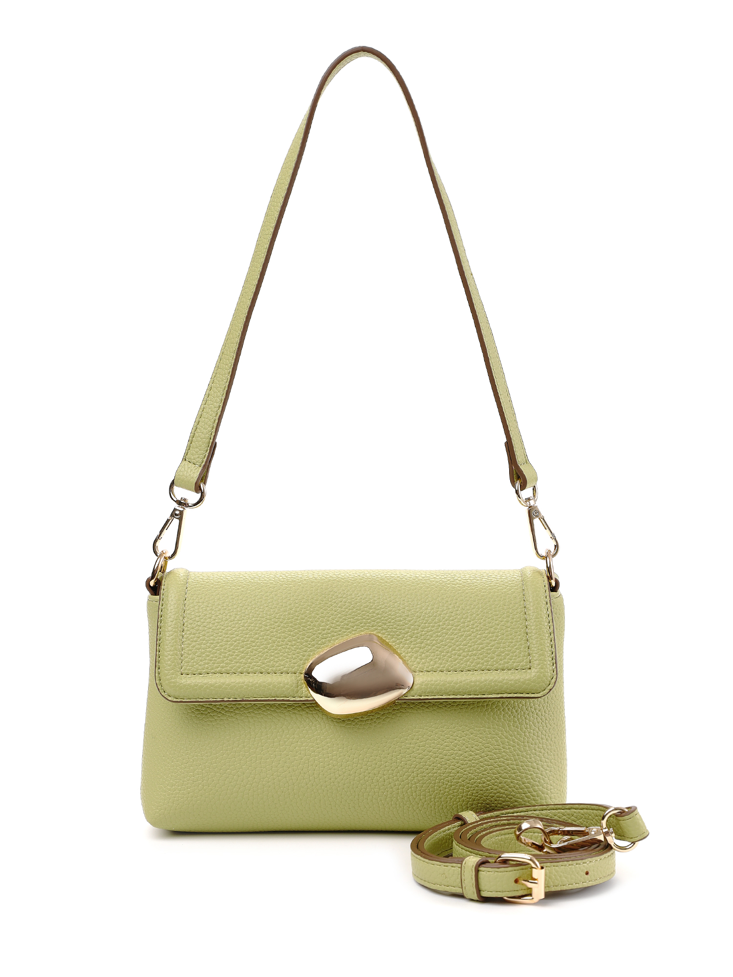 Лаконичная городская сумка кросс-боди итальянского бренда FABRETTI из высококачественной экокожи теплого желто-зеленого оттенка с зернистой фактурой. Простой классический дизайн делает модель универсальным аксессуаром под любой образ, эффектным акцентом служит объемная металлическая вставка на клапане сумки.