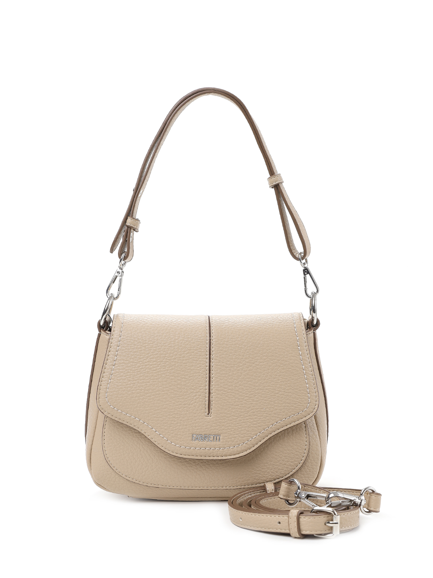 Необычная женская сумка кросс-боди с клапаном итальянского бренда FABRETTI из высококачественной зернистой экокожи песочно-бежевого оттенка.