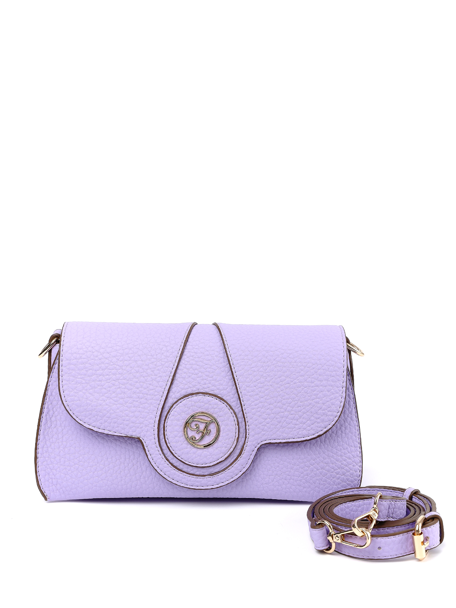 Небольшая женская сумочка кросс-боди итальянского бренда FABRETTI в романтичном дизайне с удобной внутренней организацией пространства. Крупнозернистая экокожа окрашена в нежный светло-сиреневый оттенок. Клапан украшен украшен изящной металлической монограммой и каплевидным вырезом с отстрочкой – лаконично и элегантно.