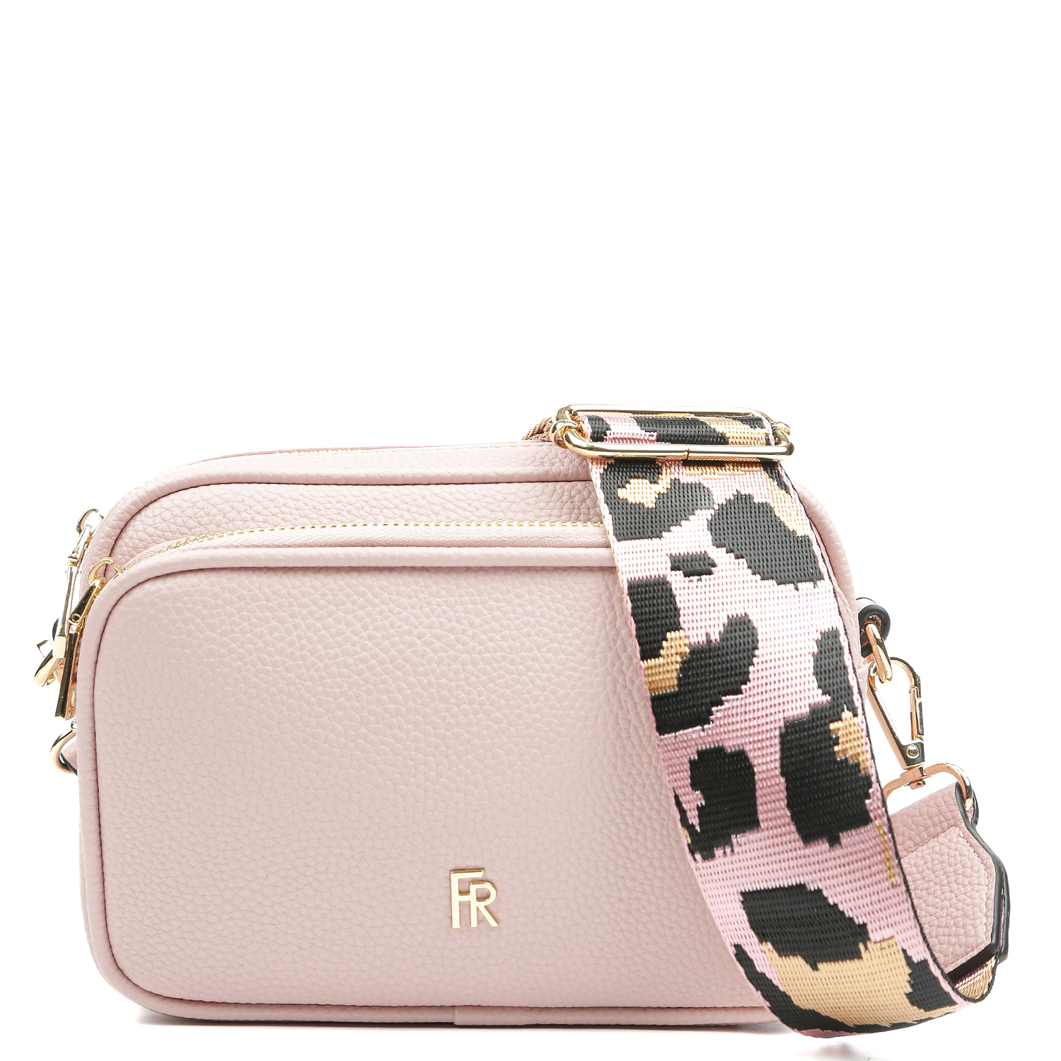Компактная кросс-боди FABRETTI в розовом оттенке выполнена из экокожи зернистой текстуры. Сумка закрывается на полукруглую молнию с металлическим поводком. Внутри есть 2 боковых кармана для мелочей: открытый и на молнии. На лицевой стороне расположен вместительный накладной карман быстрого доступа на молнии. Текстильный плечевой ремень съемный, регулируется по длине, ширина - 5 см. Цвет фурнитуры - золото.