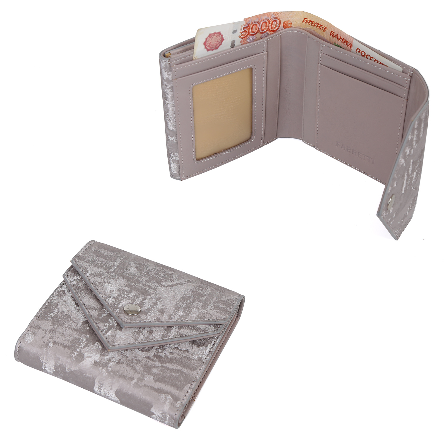 Компактный женский кошелек от итальянского бренда Fabretti интересного серого цвета. Выполнен из высококачественной мягкой кожи. Аксессуар имеет 1 отделение для купюр, карман для монет и 7 карманов для дисконтных и банковских карт, закрывается на кнопку. Фурнитура под золото.