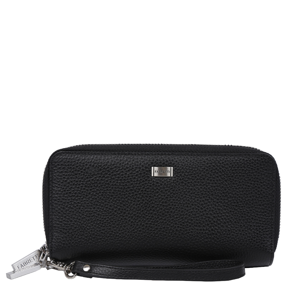 Классический кошелек от итальянского бренда Fabretti выполнен из натуральной зернистой кожи с невероятно гладкой на ощупь фактурой. Насыщенный черный цвет в сочетании из фурнитурой под серебро , а также простой лаконичный дизайн превращают кошелек в изящный аксессуар, который понравится любой моднице. Внутри модели находятся два отделения, которые закрываются на молнии с металлическими поводками. Аксессуар очень многофункционален: имеется 3 отделения для купюр, одно из которых на молнии. Вы сможете разместить все ваши дисконтные и кредитные карточки с помощью 11 отделений.