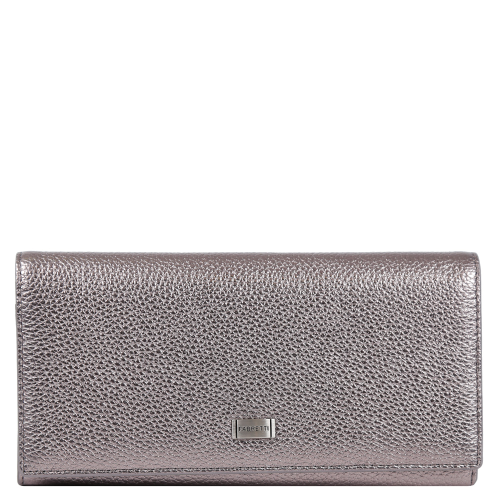 Яркий женский кошелек от итальянского бренда Fabretti выполнен из натуральной пористой кожи с невероятно стильным металлизированным покрытием. Изысканный серебряный цвет и простой лаконичный дизайн превращают модель в утонченный аксессуар, который подчеркнет вашу статустность и добавит элегантности любому наряду. Кошелек закрывается на застежку с логотипом бренда. Внутри находятся два вместительных отделения для купюр, одно из которых закрывается на молнию. Вы с легкостью сможете носить с собой дисконтные и кредитные карты за счет 13 удобных отделений, расположенных внутри аксессуара.