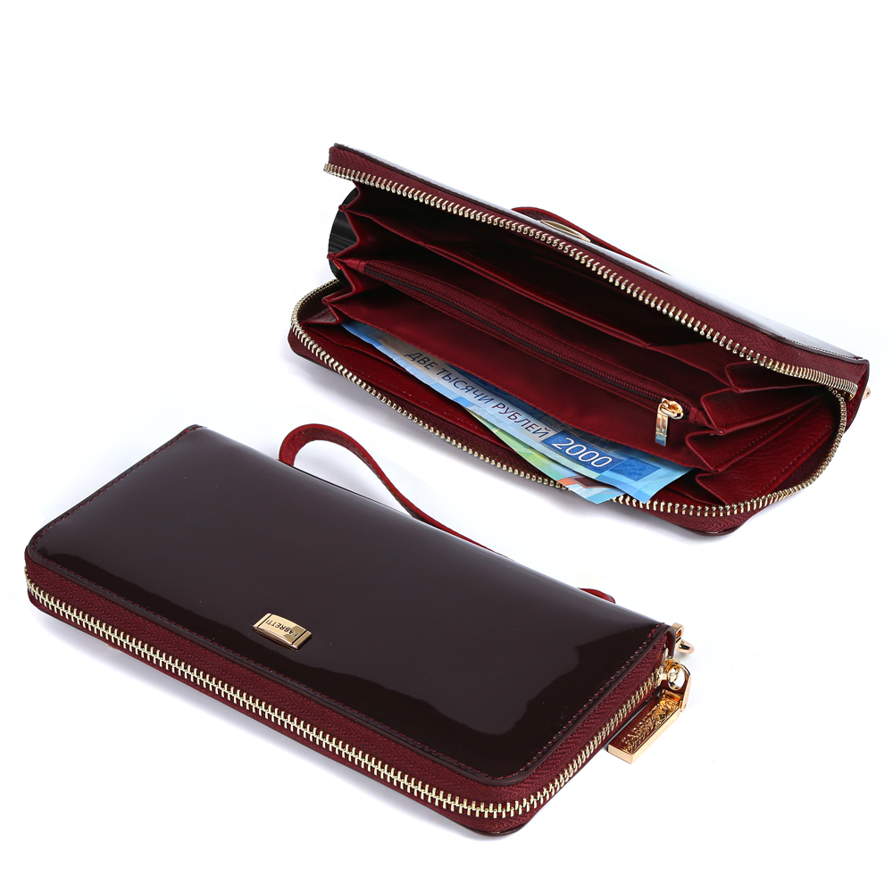 Если вы хотите подчеркнуть свой уникальный вкус присмотритесь к женскому кошельку от итальянского бренда Fabretti. Модель выполнена из натуральной лакированой кожи с гладкой и приятной на ощупь фактурой. Роскошный оттенок марсала и яркая фурнитура создают особый, утонченный дизайн, который понравится всем любительницам итальянской роскоши. Кошелек закрывается на молнию с удобным поводком. К аксессуару прикреплен отстегивающийся кожаный брелок, с помощью которого модель можно легко носить на руке. Внутри находятся 4 вместительных отделения для купюр, а также отдел на молнии, предназначенный для мелочи. Вы с легкостью сможете носить с собой дисконтные и кредитные карты за счет 10 удобных отделений, расположенных внутри аксессуара. На тыльной стороне кошелька имеется компактный кармашек, застегивающийся на аккуратную молнию.
