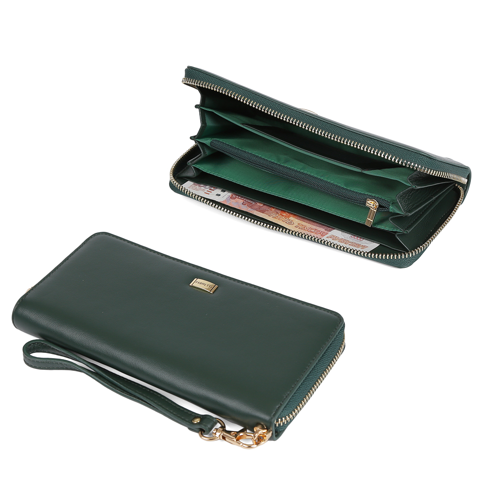 Изысканный женский кошелек от итальянского бренда Fabretti выполнен из натуральной гладкой кожи с приятной на ощупь фактурой. Роскошный изумрудный оттенок в сочетании со стильной фурнитурой под золото превращают модель в изящный аксессуар, который понравится любительницам изысканных деталей в образе. Кошелек Fabretti очень вместителен: внутри изделия находятся шесть отделений для купюр, одно из которых предназначено для монет и закрывается на удобную молнию. Вы также сможете разместить свои дисконтные и кредитные карточки с помощью 8 карманов. Аксессуар закрывается на молнию с модным стальным поводком.