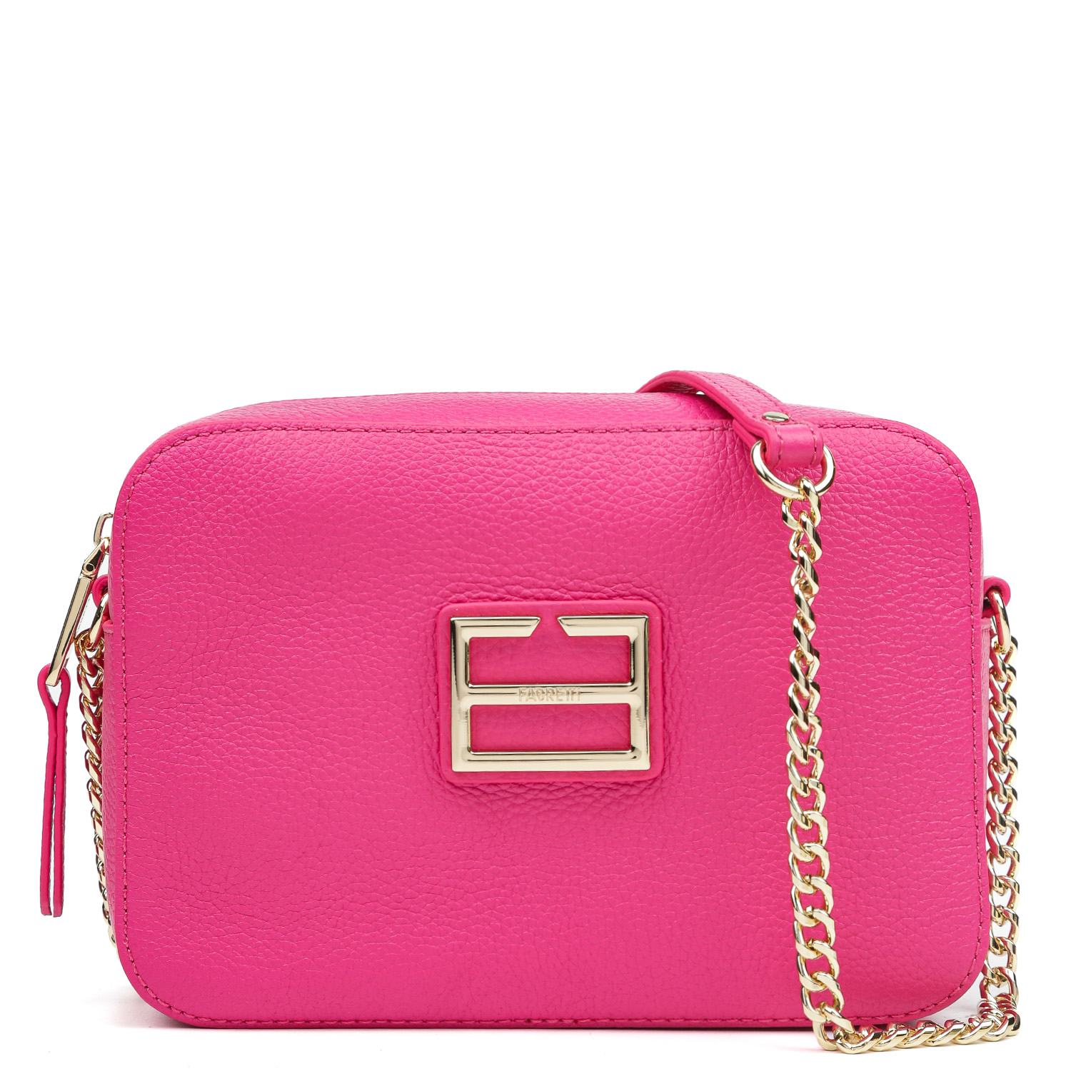 Компактная кросс-боди FABRETTI выполнена из натуральной зернистой кожи в оттенке фуксии. Основное отделение закрывается на полукруглую молнию с кожаным поводком. Внутри 2 боковых кармана: открытый и на молнии. На тыльной стороне предусмотрен карман быстрого доступа на молнии. На лицевой стороне аксессуар декорирован лаконичной монограммой бренда. Изящный плечевой ремень-цепочка позволяет комфортно носить аксессуар через плечо. Цвет фурнитуры - золото. В сумке поместятся смартфон, паспорт, небольшой кошелек, ключи, разные женские мелочи и даже маленькая книга из серии pocket-books.