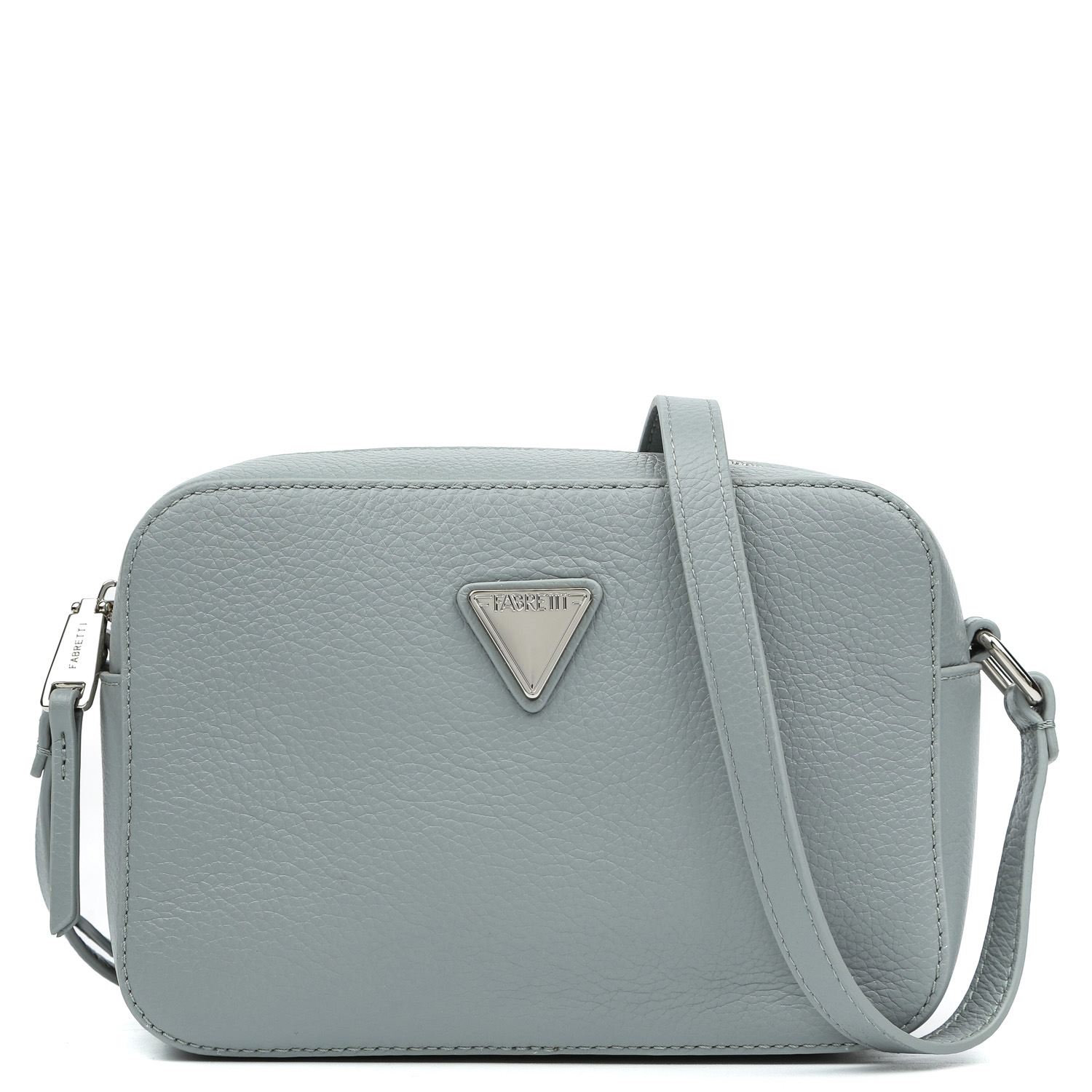 Компактная кросс-боди FABRETTI выполнена из натуральной зернистой кожи в серо-голубом оттенке. Основное отделение закрывается на полукруглую молнию с кожаным поводком. Внутри 2 боковых кармана: открытый и на молнии. На тыльной стороне предусмотрен карман быстрого доступа на молнии. На лицевой стороне аксессуар декорирован лаконичным шильдом с логотипом бренда. Плечевой ремень регулируется по длине, ширина - 1,5 см. Цвет фурнитуры - серебро. В сумке поместятся смартфон, паспорт, небольшой кошелек, ключи, разные женские мелочи и даже маленькая книга из серии pocket-books.