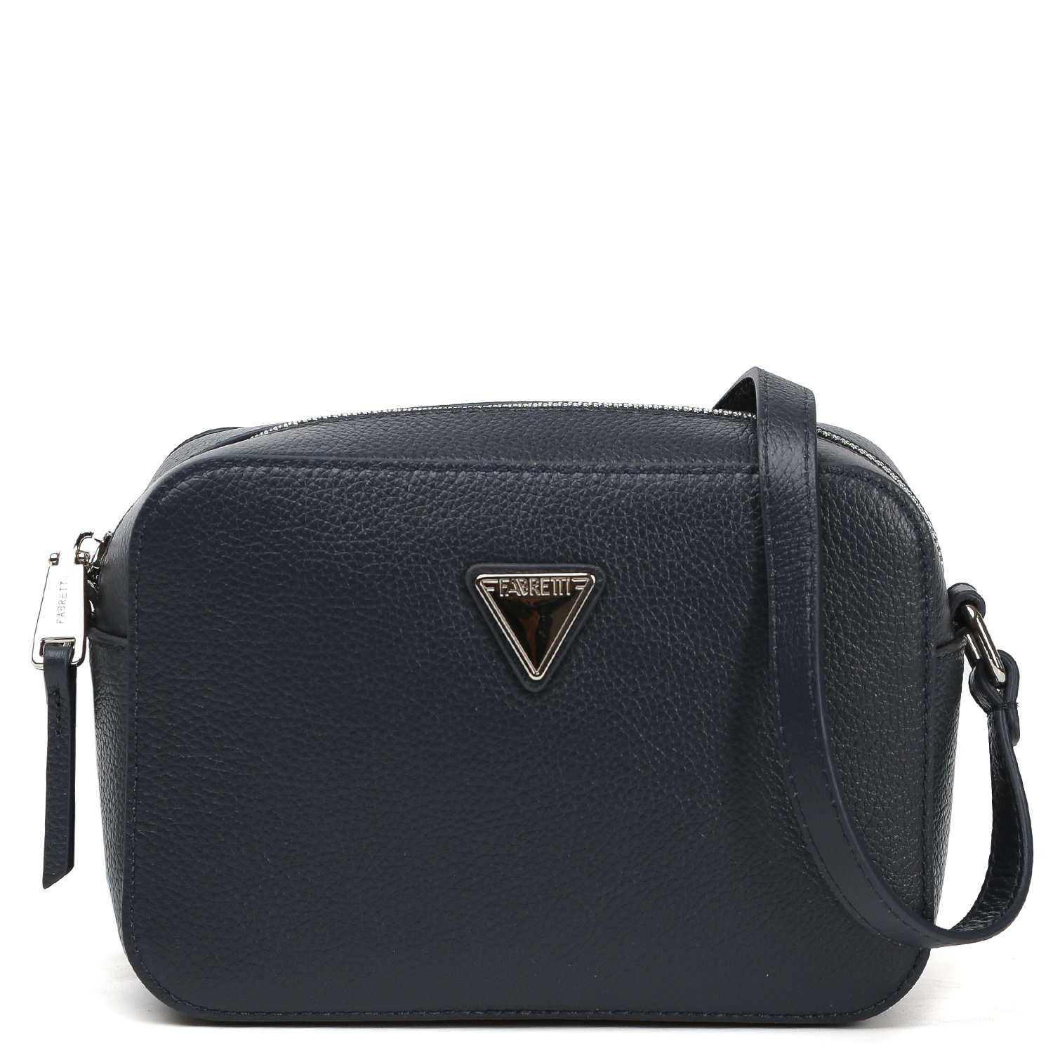 Стильная кросс-боди FABRETTI в синем оттенке выполнена из натуральной зернистой кожи. Сумка закрывается на полукруглую молнию с кожаным поводком. Внутри 2 боковых кармана для мелочей: открытый и на молнии. На тыльной стороне расположен карман быстрого доступа на молнии. Плечевой ремень регулируется по длине, ширина - 1,5 см. Цвет фурнитуры - серебро.