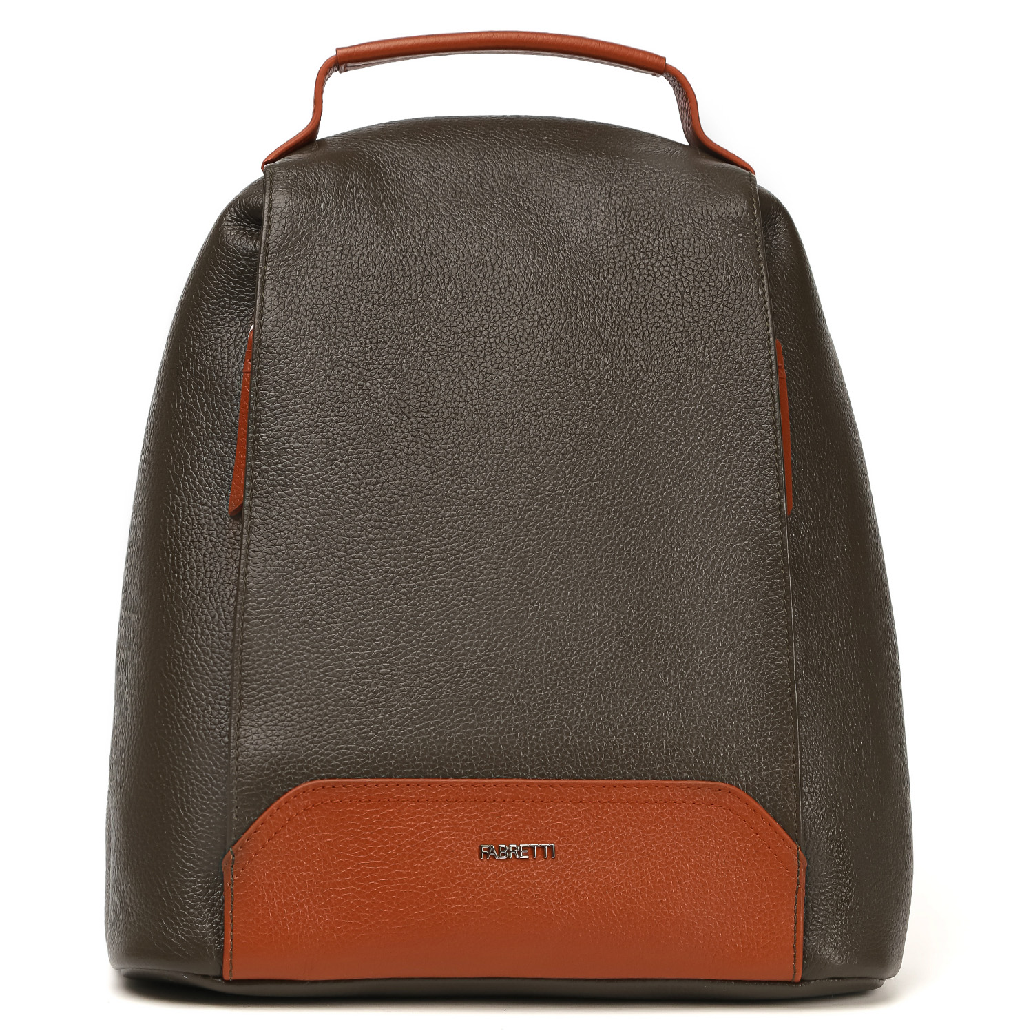 Стильный рюкзак FABRETTI в серо-зеленом оттенке выполнен из натуральной зернистой кожи. Основное отделение закрывается на полукруглую молнию с 2 бегунками. Внутри 3 боковых кармана для мелочей: 2 открытых и на молнии. На лицевой стороне расположены 2 вертикальных кармана на молнии. На тыльной стороне предусмотрен вертикальный карман быстрого доступа на молнии. Сверху есть ручка, позволяющая комфортно носить изделие в руке. Лямки шириной 2 см регулируются по длине. Цвет фурнитуры - серебро.