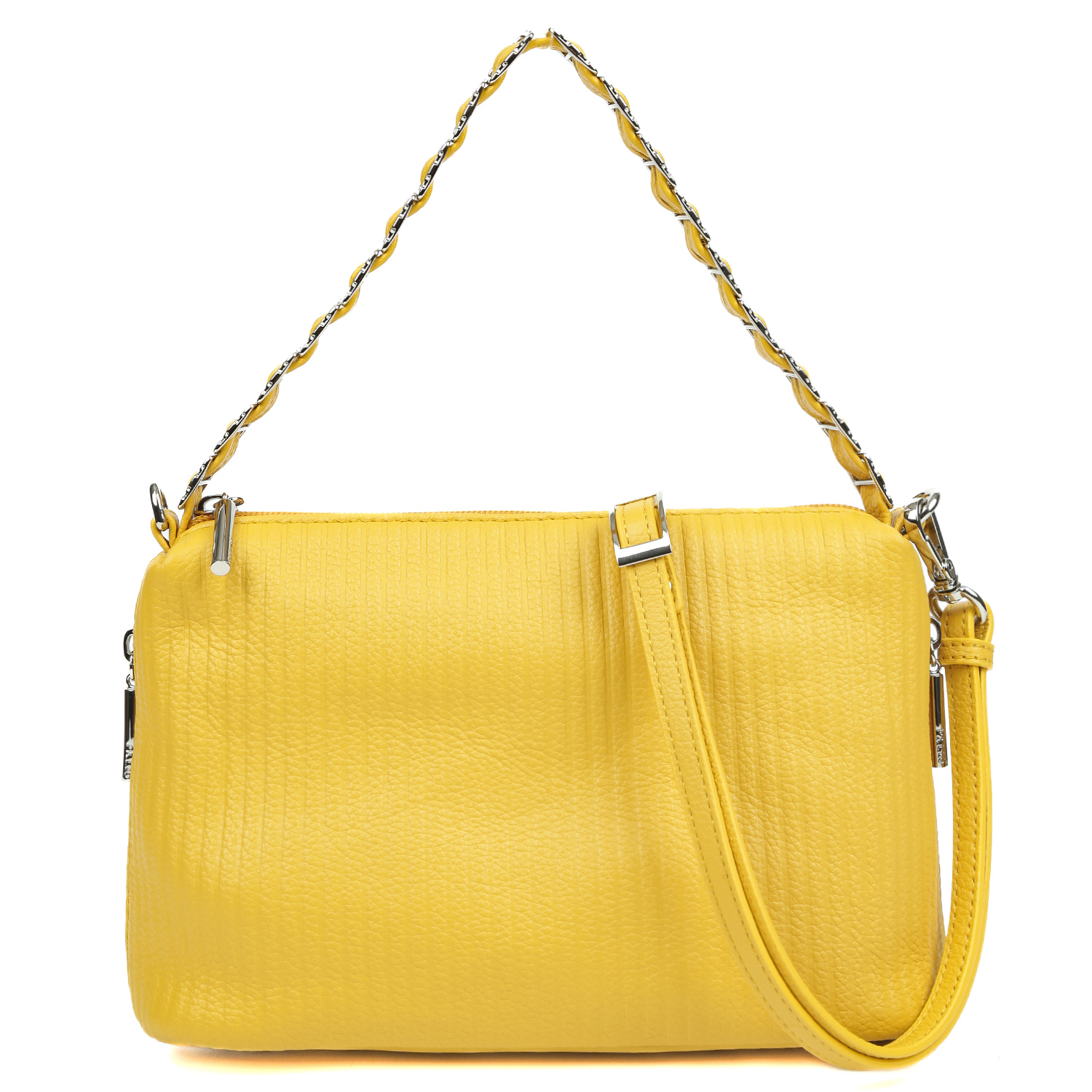 Стильная кросс-боди PALIO в желтом оттенке выполнена из натуральной зернистой кожи и декорирована геометрическим тиснением. Идеальный размер для прогулок. Основное отделение закрывается на молнию с металлическим поводком. Внутри расположены 2 отсека, разделенные средником на молнии. В одном имеется карман на молнии, в другом - 2 открытых кармана для смартфона и мелочей. На внешних боковых стенках - удобные вертикальный кармашки быстрого доступа на молнии. Съемный плечевой ремень регулируется по длине, ширина - 1 см. Цвет фурнитуры - серебро.
