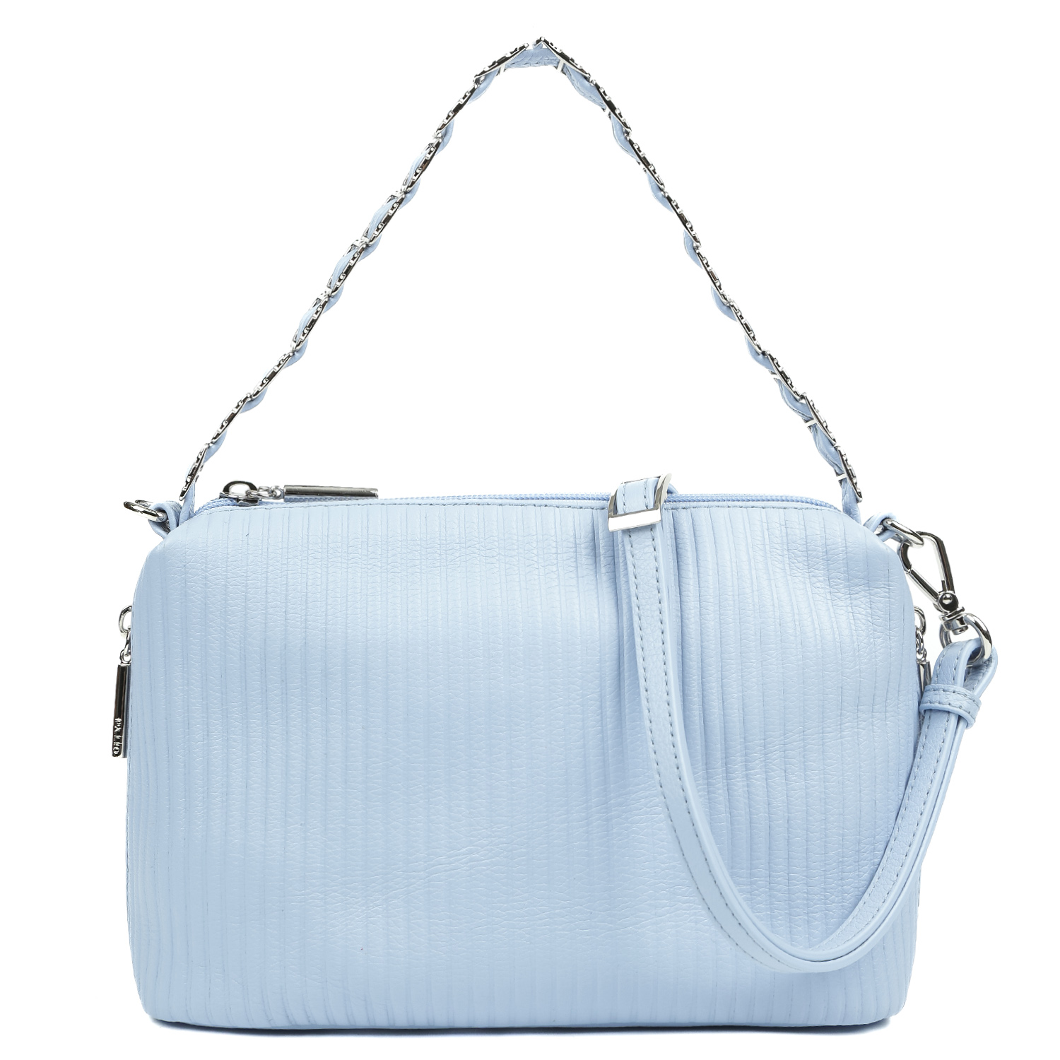 Стильная кросс-боди PALIO в голубом оттенке выполнена из натуральной зернистой кожи и декорирована геометрическим тиснением. Идеальный размер для прогулок. Основное отделение закрывается на молнию с металлическим поводком. Внутри расположены 2 отсека, разделенные средником на молнии. В одном имеется карман на молнии, в другом - 2 открытых кармана для смартфона и мелочей. На внешних боковых стенках - удобные вертикальный кармашки быстрого доступа на молнии. Съемный плечевой ремень регулируется по длине, ширина - 1 см. Цвет фурнитуры - серебро.