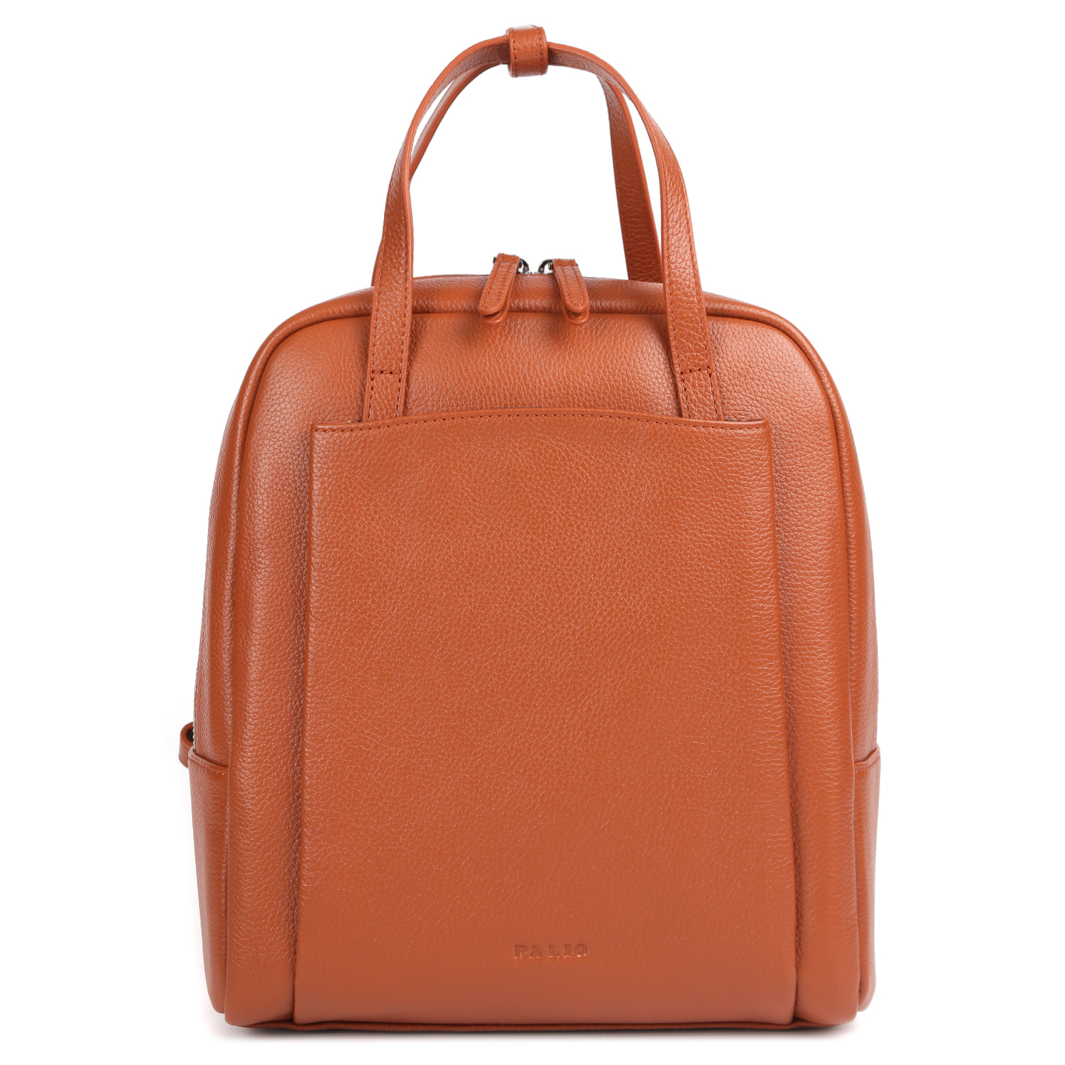 Стильный рюкзак PALIO в рыжем оттенке выполнен из натуральной зернистой кожи. Основное отделение закрывается на полукруглую молнию с 2 бегунками. Внутри 3 боковых кармана для мелочей: 2 открытых и на молнии. На лицевой стороне расположен вместительный карман на магнитной кнопке. На тыльной стороне предусмотрен вертикальный карман быстрого доступа на молнии. Сверху есть 2 ручки, позволяющие комфортно носить изделие в руке. 2 лямки шириной 2 см регулируются по длине. Цвет фурнитуры - серебро.