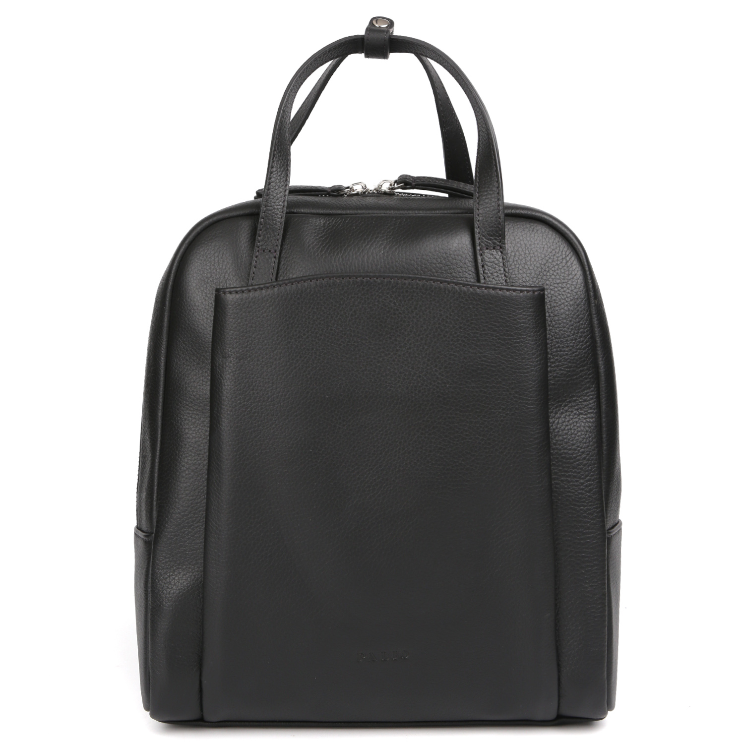 Стильный рюкзак PALIO в черном цвете выполнен из натуральной зернистой кожи. Основное отделение закрывается на полукруглую молнию с 2 бегунками. Внутри 3 боковых кармана для мелочей: 2 открытых и на молнии. На лицевой стороне расположен вместительный карман на магнитной кнопке. На тыльной стороне предусмотрен вертикальный карман быстрого доступа на молнии. Сверху есть 2 ручки, позволяющие комфортно носить изделие в руке. 2 лямки шириной 2 см регулируются по длине. Цвет фурнитуры - серебро.