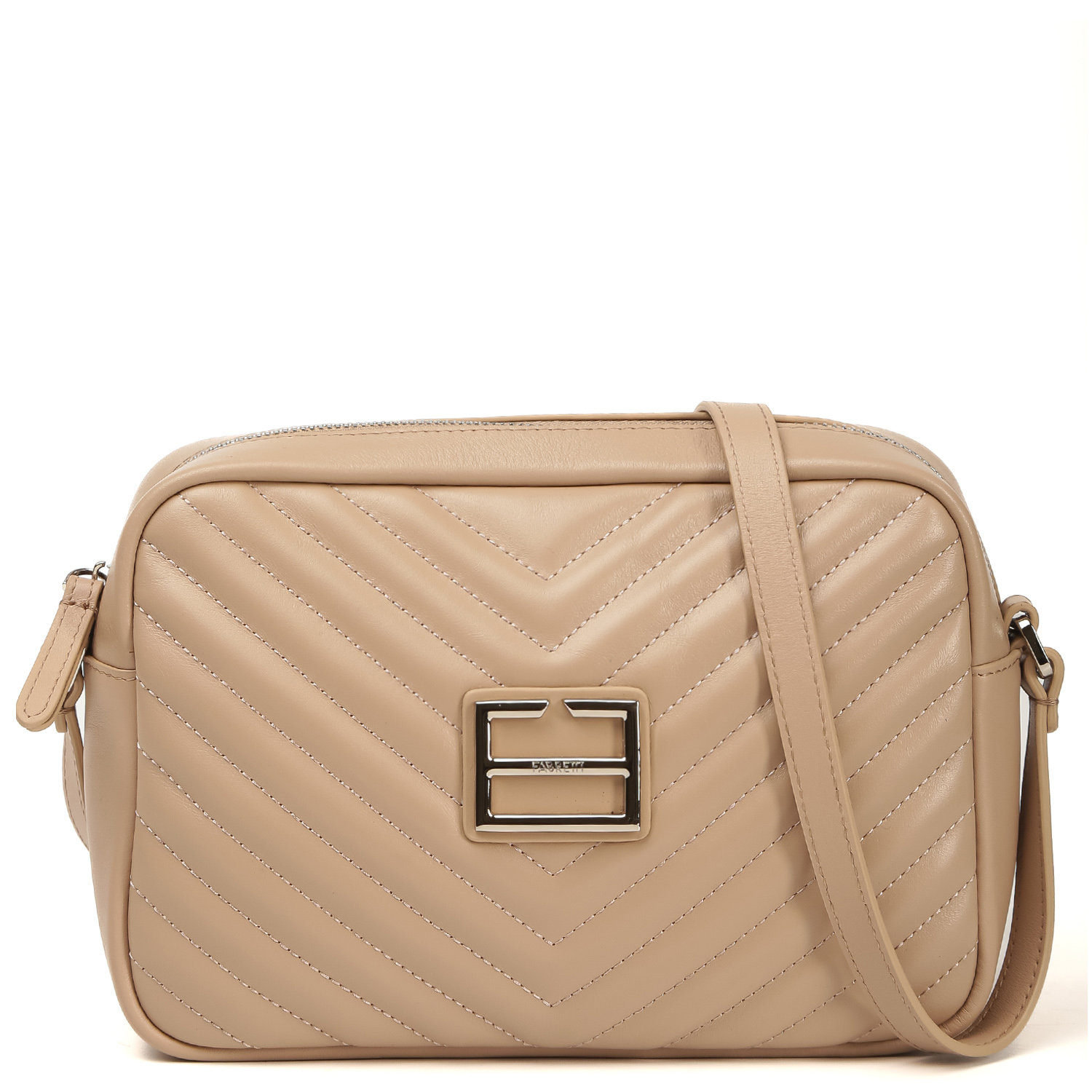 Компактная сумка через плечо FABRETTI в бежевом оттенке выполнена из натуральной кожи нежной текстуры и декорирована геометрической стёжкой. Основное отделение на полукруглой молнии с кожаным поводком. Внутри 2 кармана для мелочей: открытый и на молнии. На тыльной стороне предусмотрен карман быстрого доступа на молнии. Плечевой ремень регулируется по длине, ширина - 1,5 см. цвет фурнитуры - серебро.
