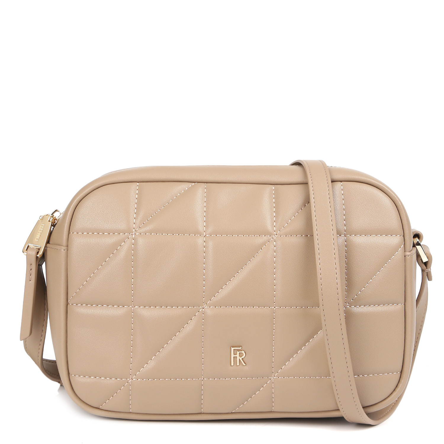 Стильная кросс-боди FABRETTI в бежевом оттенке выполнена из натуральной гладкой кожи и на лицевой стороне декорирована ромбовидной стежкой. Основное отделение закрывается на молнию. Внутри есть 2 боковых кармана для мелочей: открытый и на молнии. На тыльной стороне предусмотрен карман быстрого доступа на молнии. Плечевой ремень регулируется по длине, ширина - 1,5 см. Цвет фурнитуры- золото.