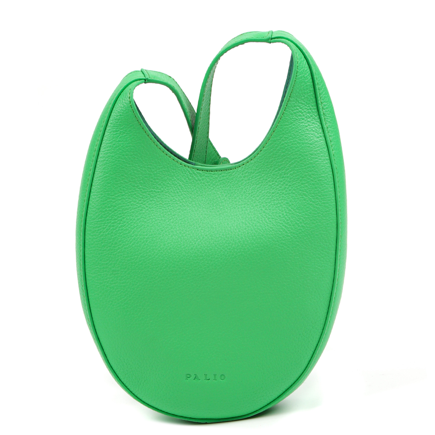 Компактная кросс-боди PALIO из натуральной зернистой кожи в зеленом оттенке отличается оригинальной формой и лаконичным дизайном. Основное отделение закрывается на магнитную кнопку. Внутри предусмотрен открытый боковой карман для мелочей. Лицевая сторона декорирована миниатюрным тиснением в виде логотипа бренда. Плечевой ремень регулируется по длине. Цвет фурнитуры - серебро.