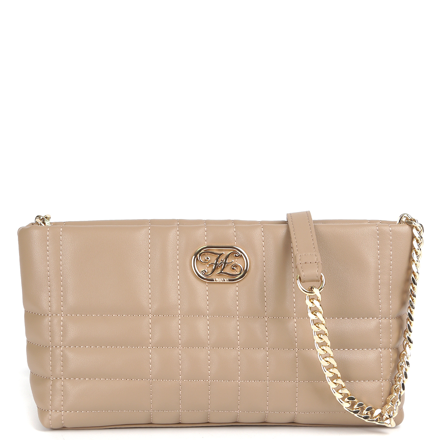 Стильная кросс-боди FABRETTI в темно-бежевом оттенке выполнена из натуральной гладкой кожи нежной выделки и декорирована геометрической стежкой. Основное отделение закрывается на молнию. Внутри 2 боковых кармана для мелочей: открытый и на молнии. На лицевой стороне расположен шильд с монограммой бренда. Изящный плечевой ремень сочетает металлическую цепочку со вставками из натуральной кожи и позволяет комфортно носить аксессуар на плече. Цвет фурнитуры - золото.