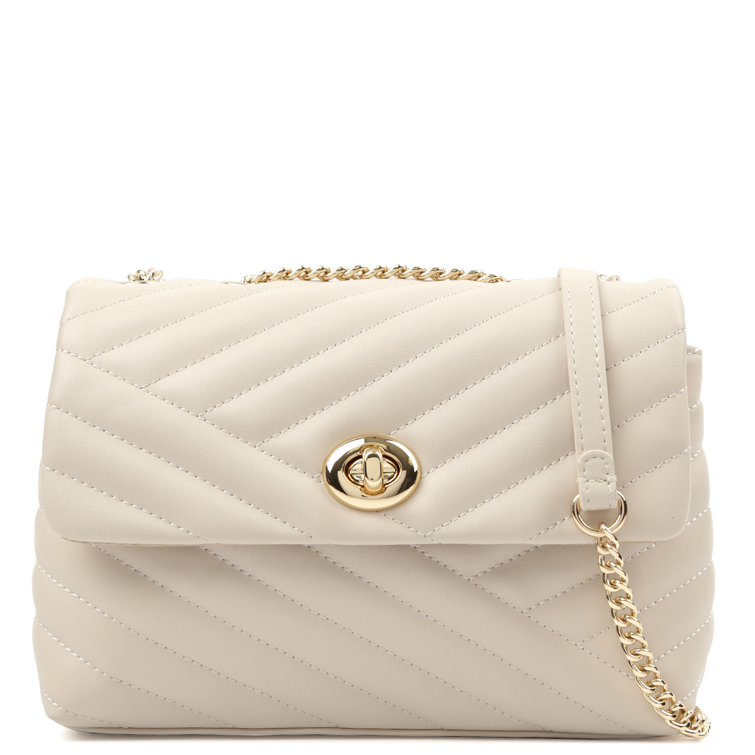 Стильная кросс-боди FABRETTI в светло-бежевом оттенке выполнена из натуральной гладкой кожи и декорирована геометрической стёжкой. Основное отделение закрывается клапаном с поворотным замком. Внутри 2 кармана быстрого доступа: открытый и на молнии. Ремень-цепочку можно носить двумя способами: через плечо или на плече, трансформировав в 2 ручки. Цвет фурнитуры - золото.