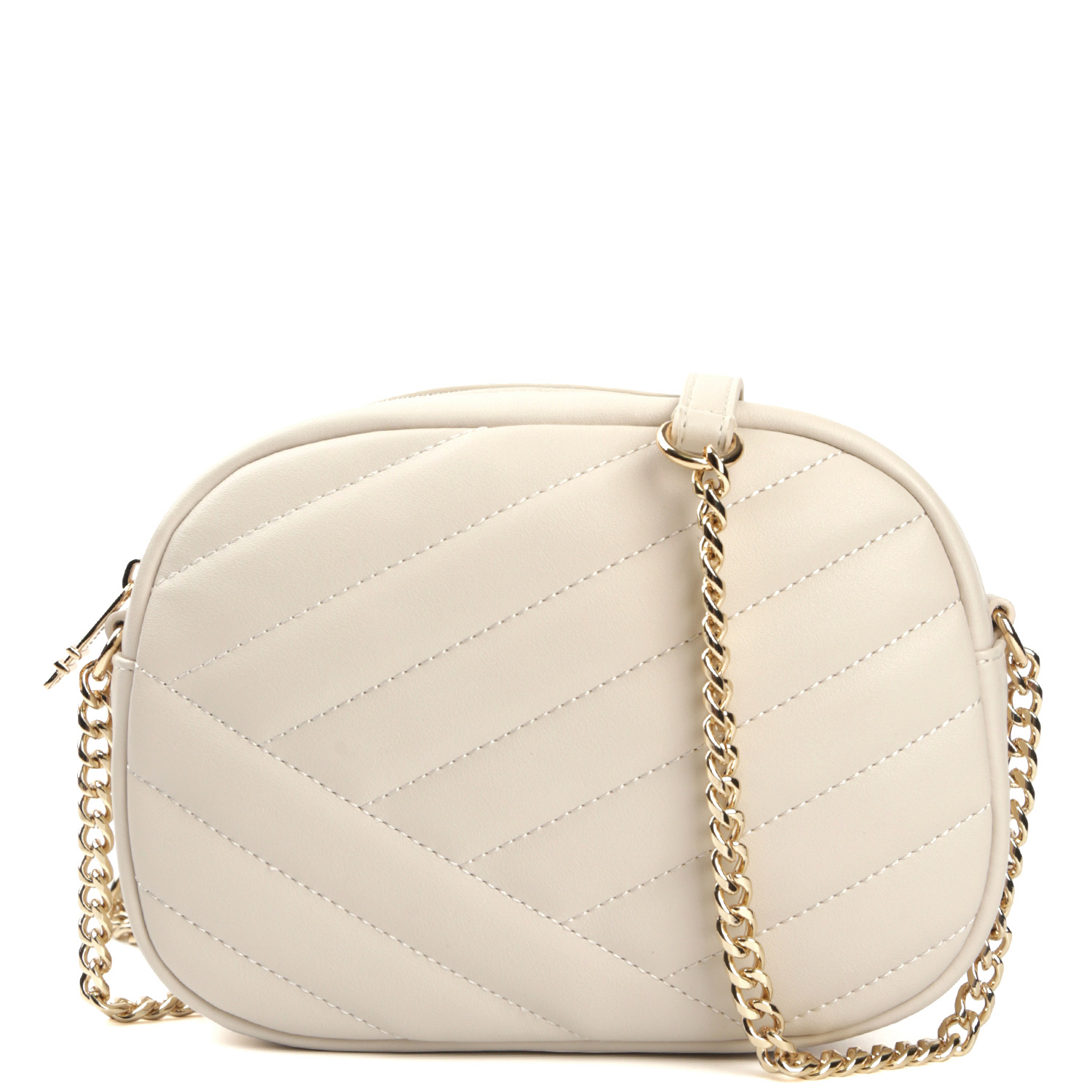 Стильная кросс-боди FABRETTI в бежевом оттенке выполнена из натуральной гладкой кожи и декорирована диагональной стежкой. Сумка закрывается на полукруглую молнию. Внутри 2 боковых кармана для мелочей: открытый и на молнии. Изящный плечевой ремень-цепочка регулируется по длине, ширина - 1,5 см. Цвет фурнитуры - золото.
