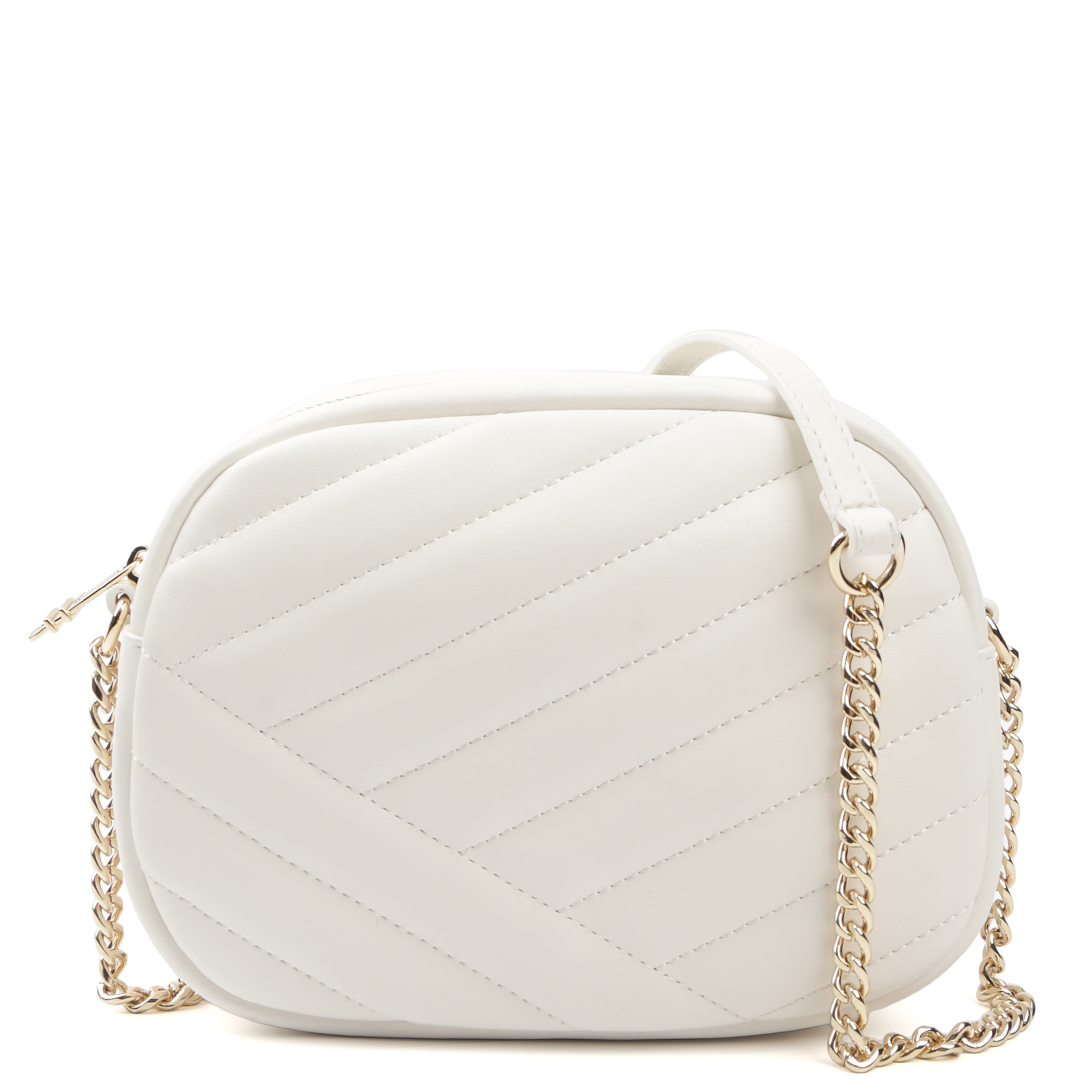Стильная кросс-боди FABRETTI в белом цвете выполнена из натуральной гладкой кожи и декорирована диагональной стежкой. Сумка закрывается на полукруглую молнию. 2 боковых кармана для мелочей: открытый и на молнии. Изящный плечевой ремень-цепочка регулируется по длине, ширина - 1,5 см. Цвет фурнитуры - золото.