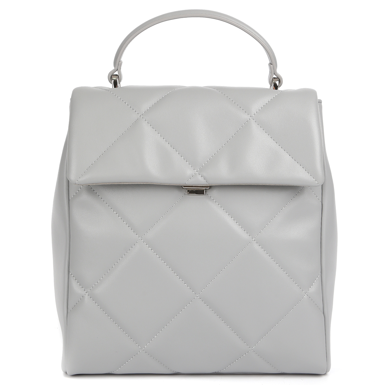 Стильный рюкзак FABRETTI в серо-голубом оттенке выполнен из натуральной кожи гладкой фактуры и декорирован ромбовидной стежкой на лицевой стороне. Основное отделение закрывается клапаном с механическим замком. Внутри 3 боковых кармана для мелочей: 2 открытых и на молнии. На тыльной стороне расположен миниатюрный шильдик с монограммой бренда и предусмотрен вертикальный карман быстрого доступа на молнии с металлическим поводком. Сверху есть ручка, позволяющая комфортно носить изделие в руке. 2 лямки шириной 2 см регулируются по длине и позволяют комфортно носить аксессуар на спине. Цвет фурнитуры - серебро.