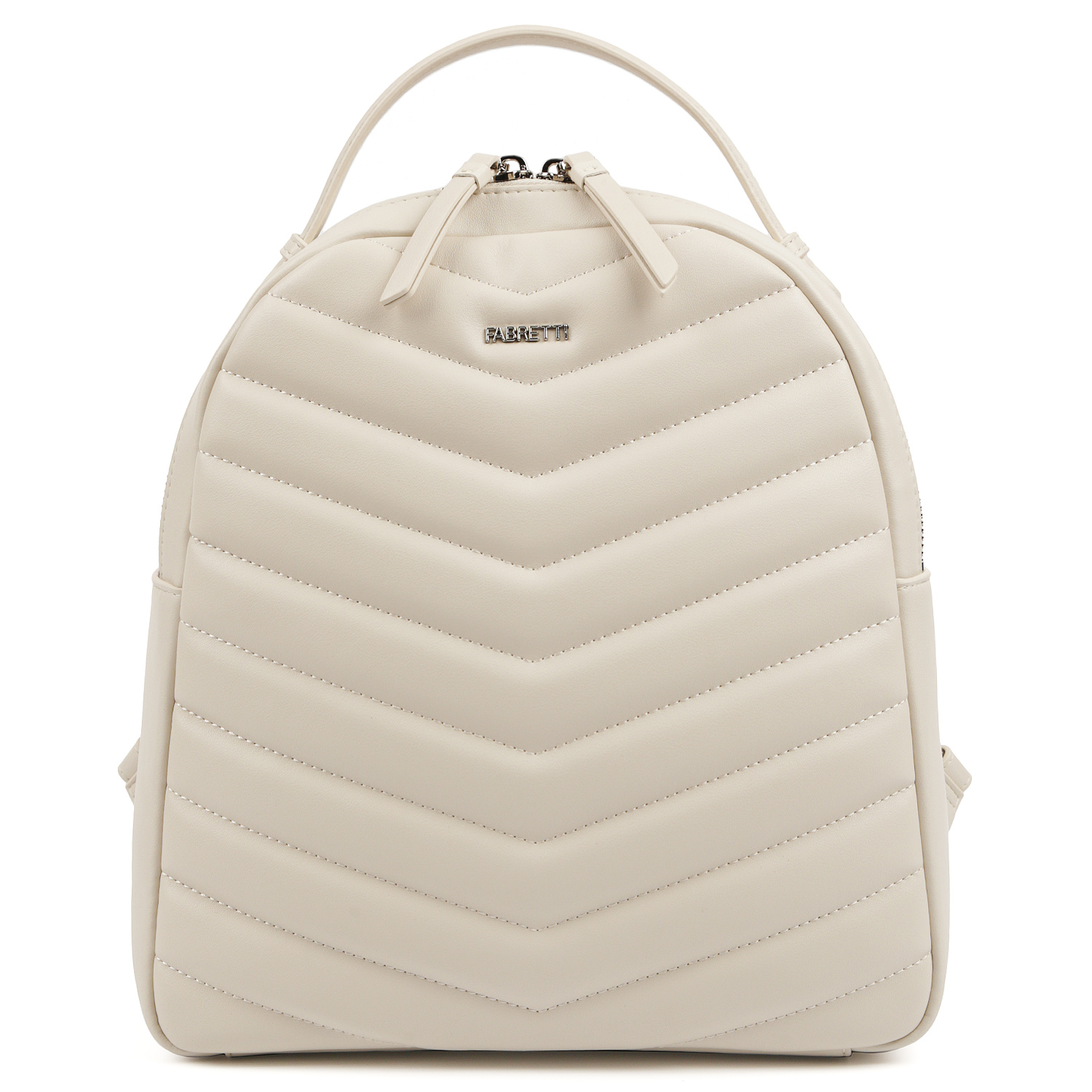 Стильный рюкзак FABRETTI в светло-бежевом оттенке выполнен из натуральной кожи гладкой фактуры и декорирован геометрической стежкой. Основное отделение закрывается на полукруглую молнию с двумя бегунками. Внутри 3 боковых кармана для мелочей: 2 открытых и на молнии. На тыльной стороне предусмотрен вертикальный карман быстрого доступа на молнии с кожаным поводком. Сверху есть ручка, позволяющая комфортно носить изделие в руке. 2 лямки шириной 2 см. регулируются по длине и позволяют комфортно носить аксессуар на спине. Цвет фурнитуры - серебро.