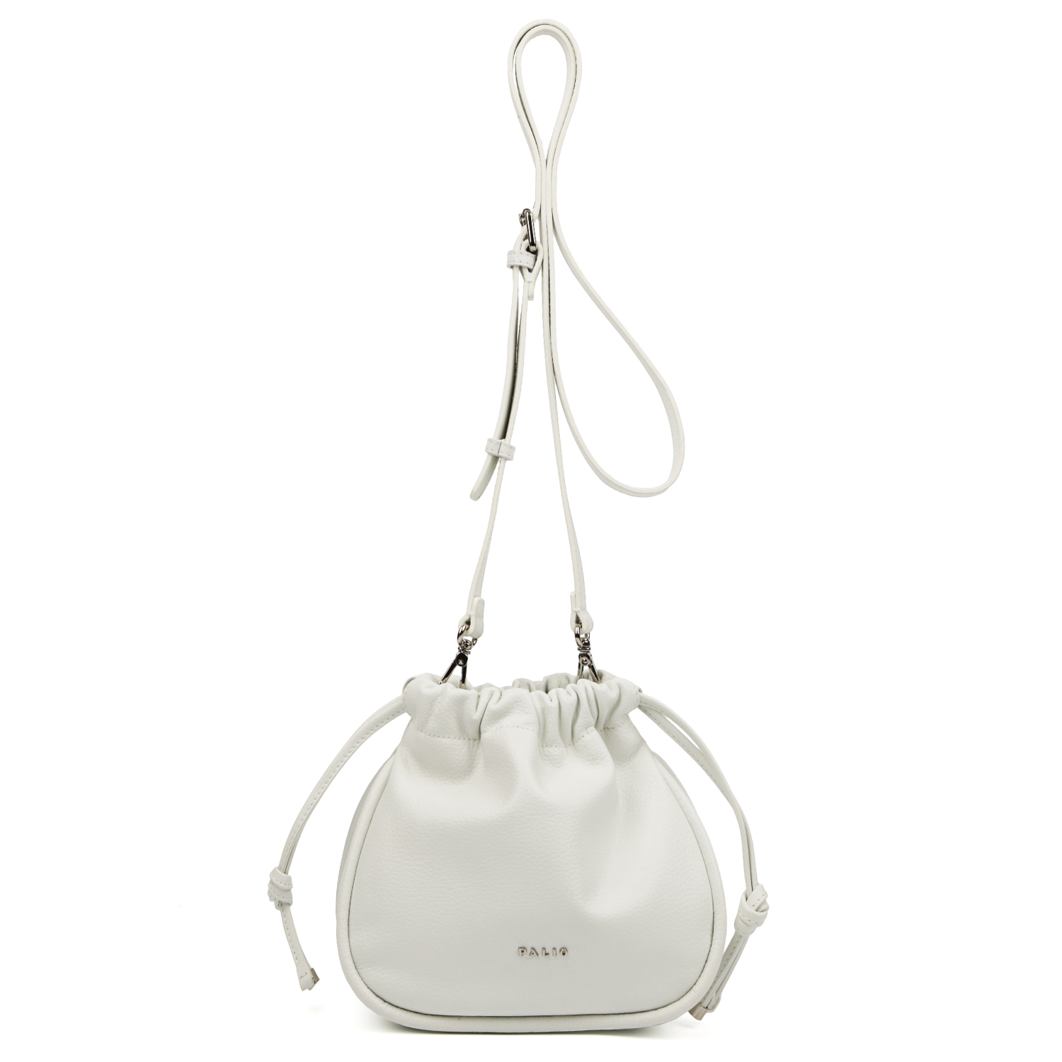 Стильная кросс-боди PALIO в белом цвете выполнена из натуральной зернистой кожи. Сумка отличается лаконичным дизайном и оригинальной формой кисет. Основное отделение закрывается на стягивающийся кожаный шнур. Внутри 2 боковых кармана: открытый и на молнии. Лицевая сторона декорирована миниатюрным шильдом с названием бренда. Съемный плечевой ремень регулируется по длине и гармонично дополняет дизайн изделия. При необходимости его можно отстегнуть, и тогда кросс-боди трансформируется в стильный клатч. Ширина плечевого ремня - 1,5 см. Цвет фурнитуры - серебро.